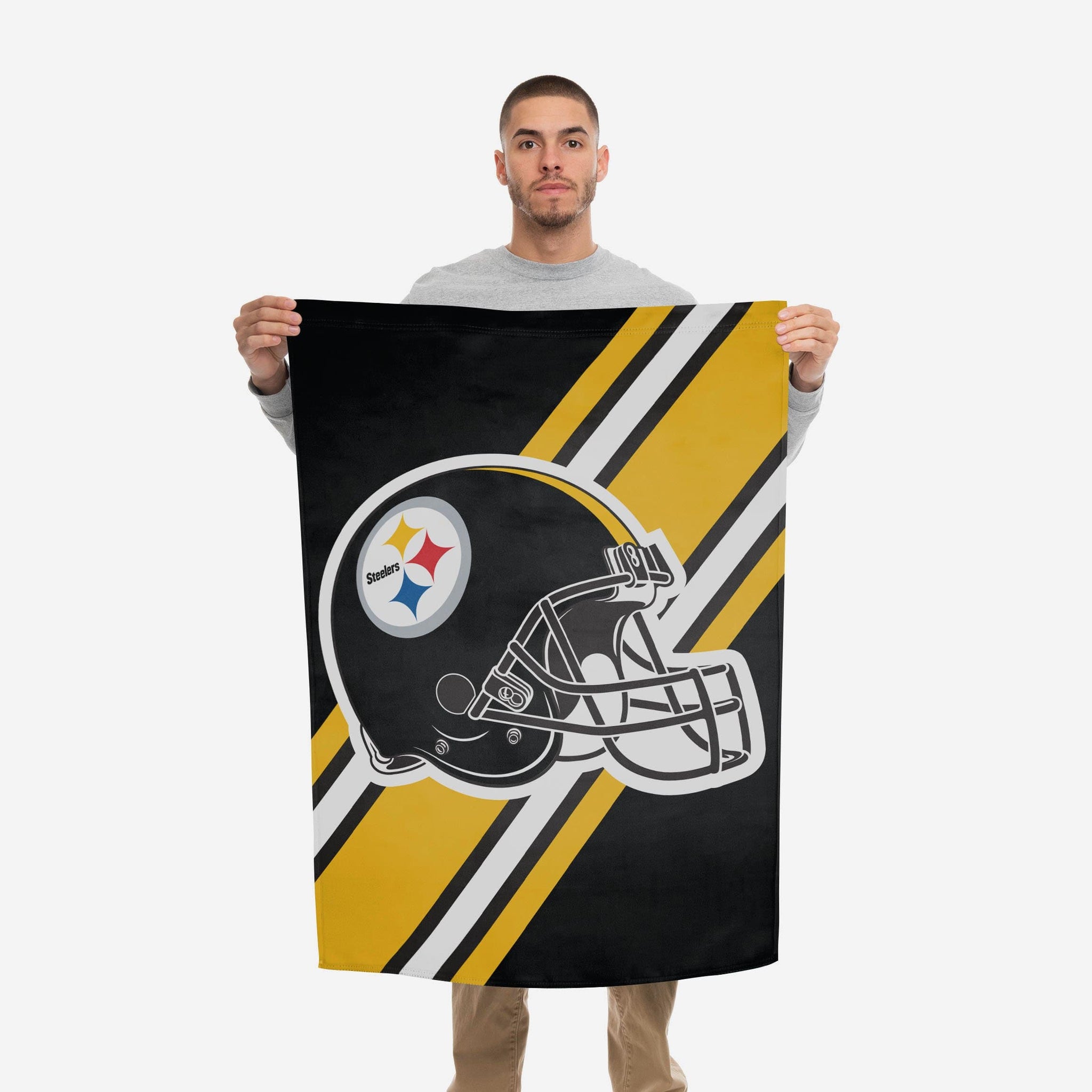 Get your head in the game! Let everyone know you're a phenom of football fandom and let your fan flag fly with this Pittsburgh Steelers Helmet Vertical Flag!