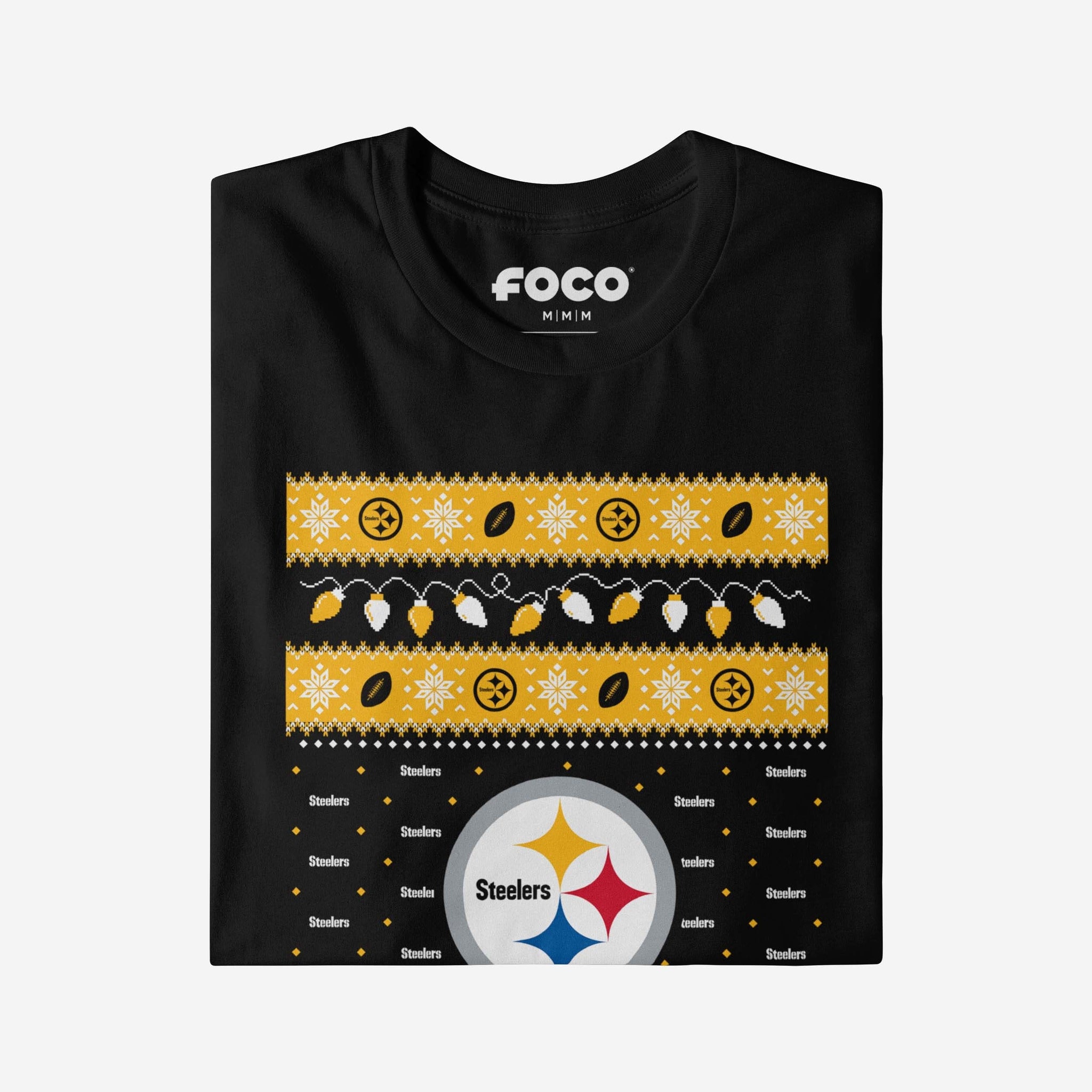 Pittsburgh Steelers Holiday Lights Sweater Long Sleeve T-Shirt FOCO S - FOCO.com