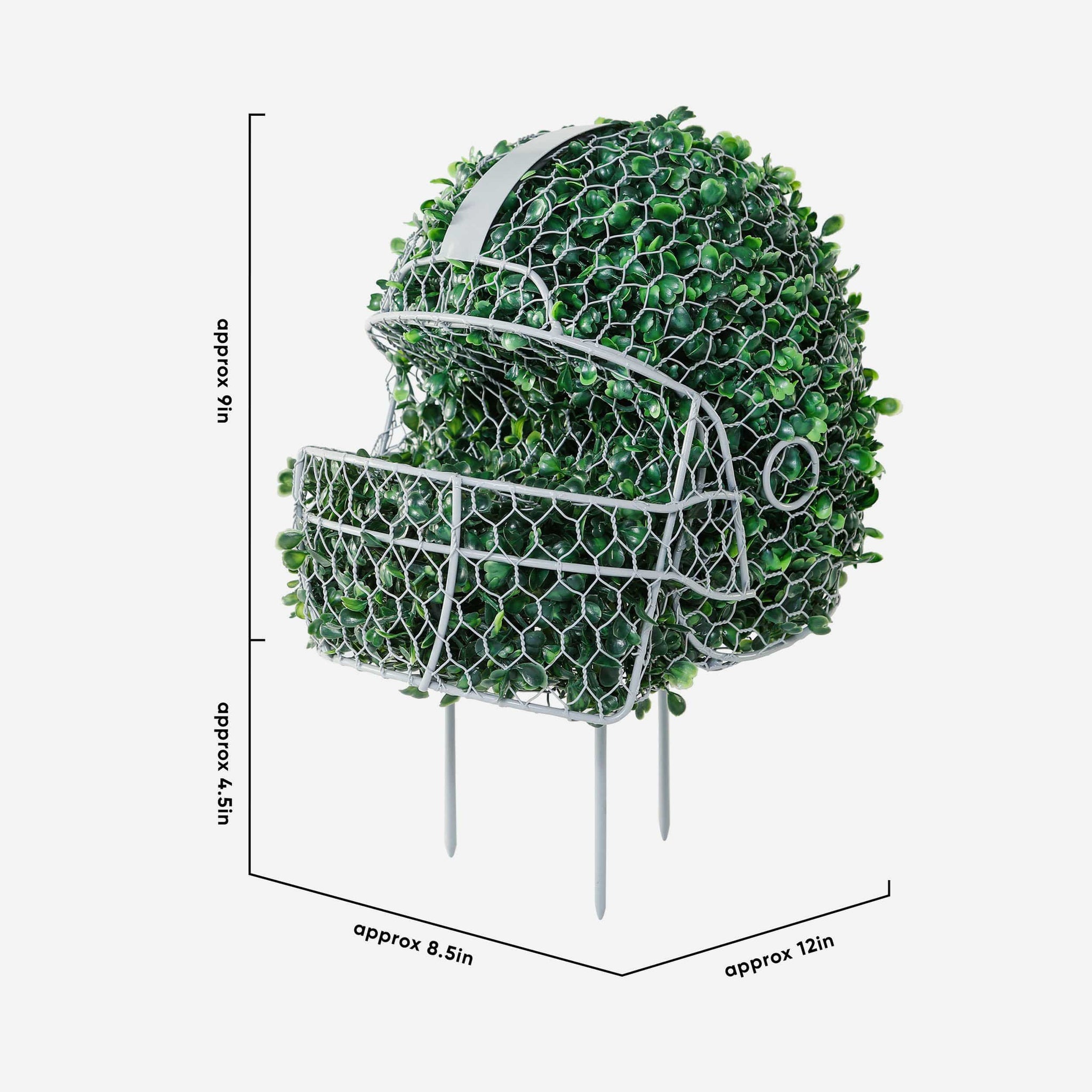 - Helmet-shaped topiary frame with interior faux leaves that will look great in your garden