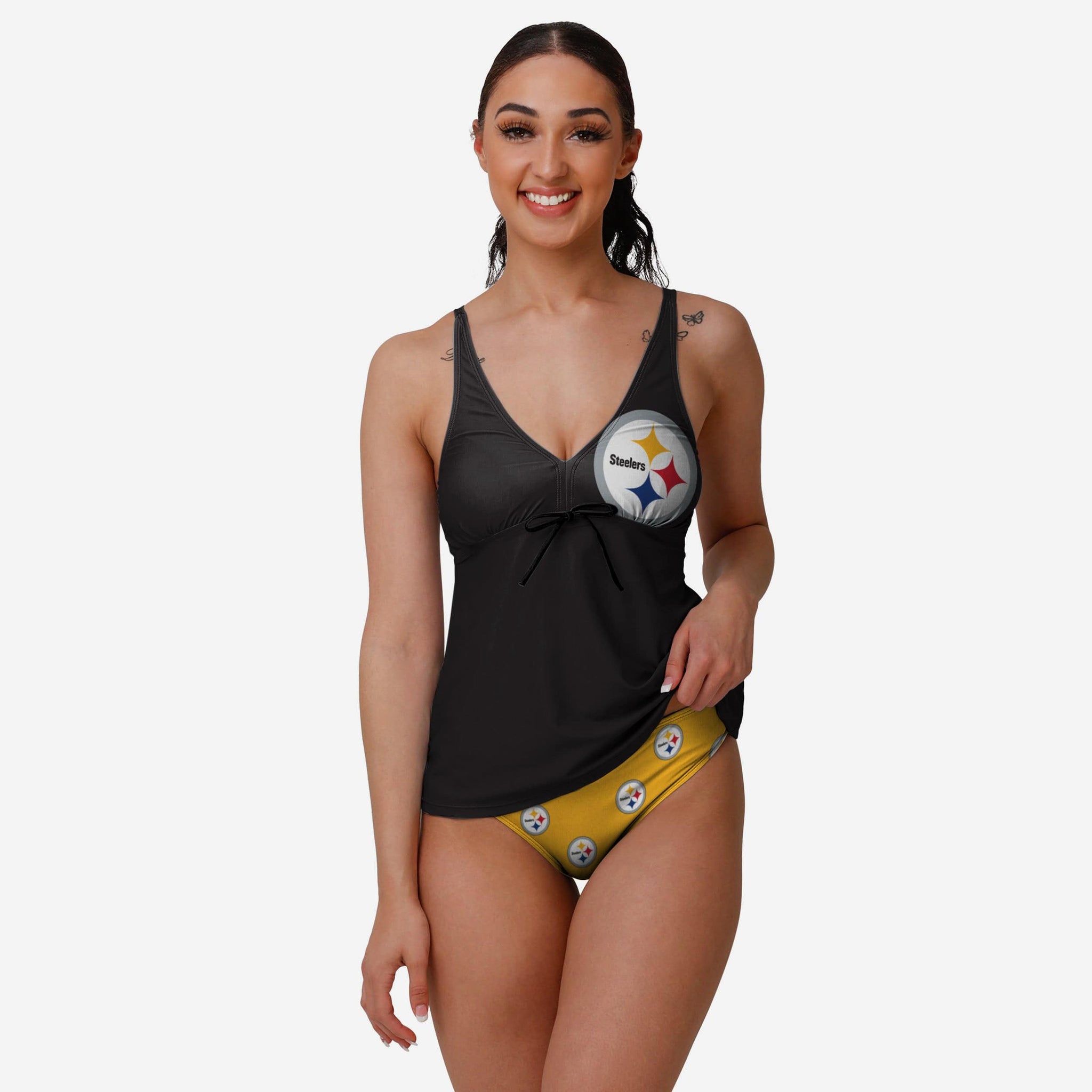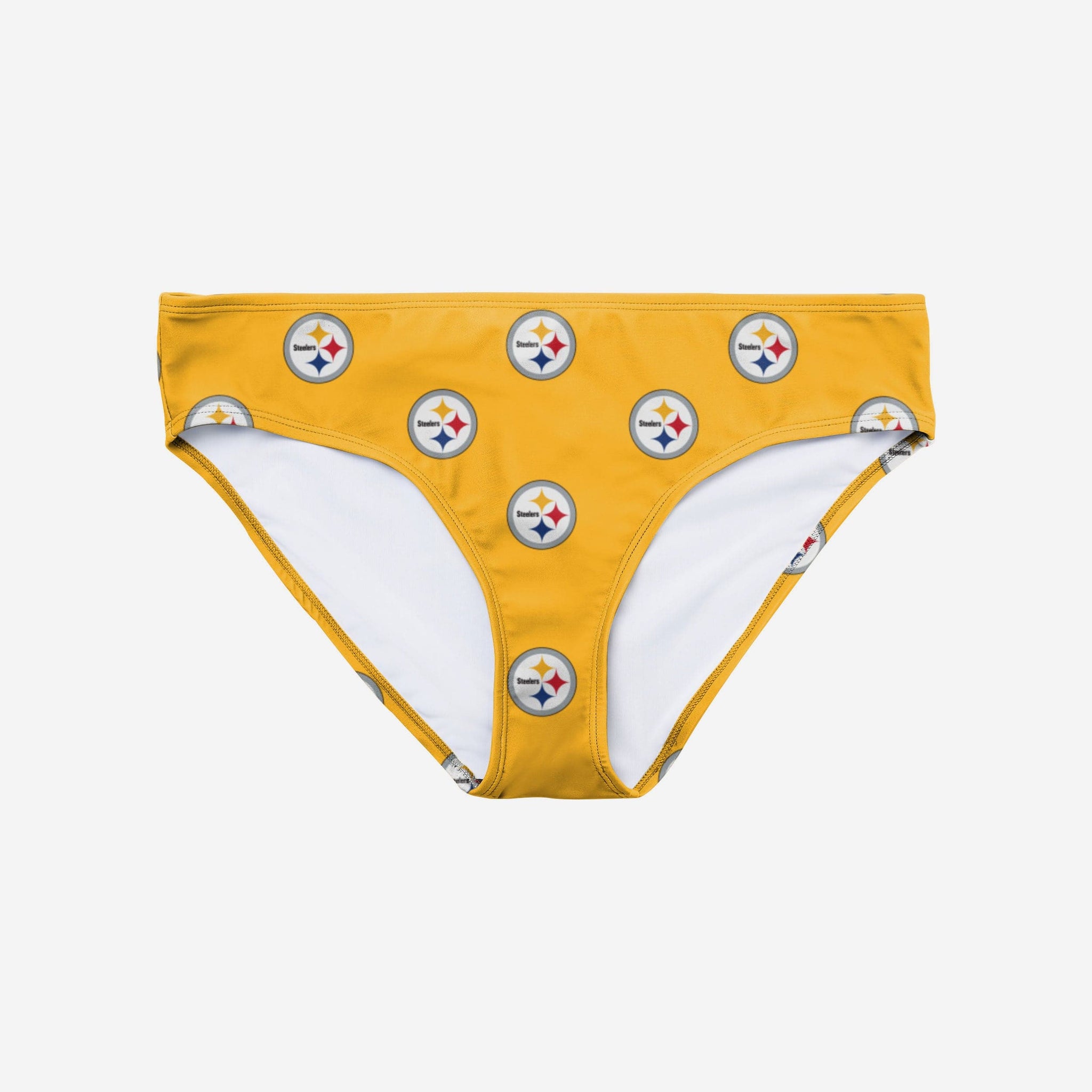 Trying to beat the sweltering heat? Dive into the deep end of the fan pool with this Pittsburgh Steelers Women's Summertime Mini Print Bikini Bottom.