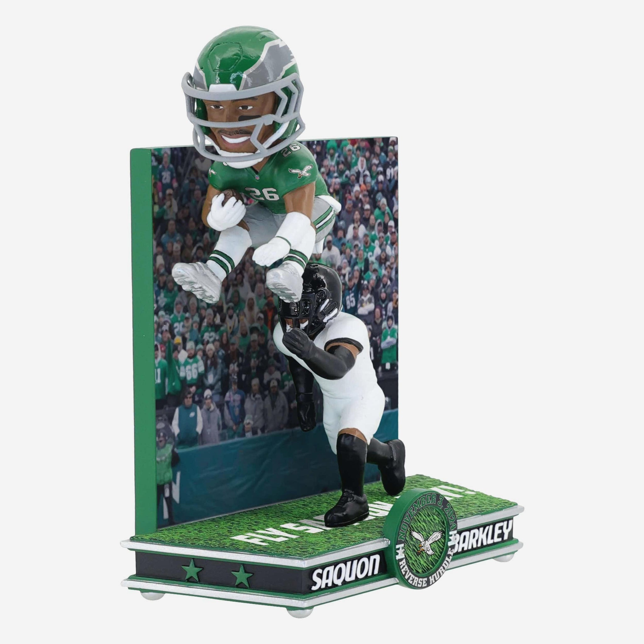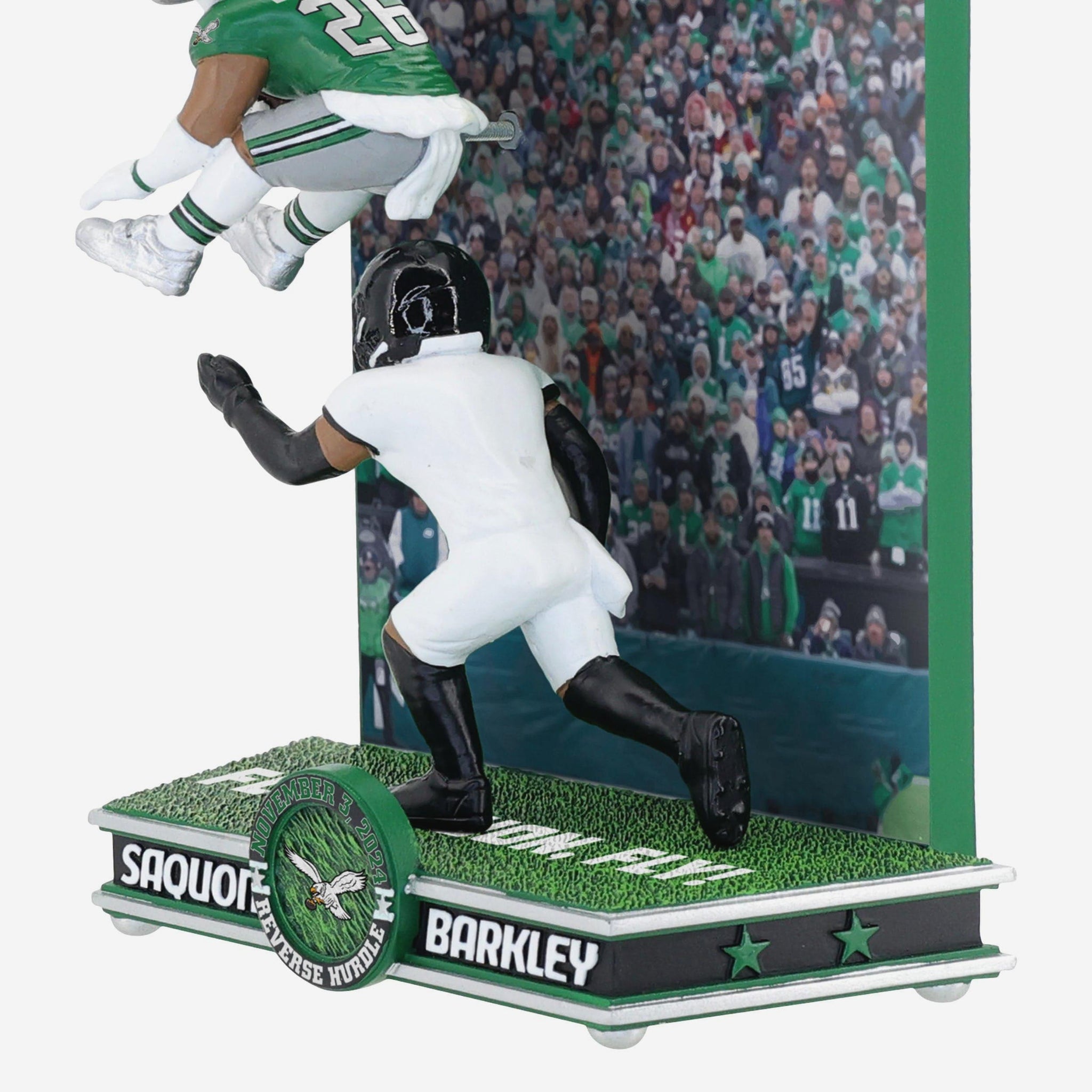 Fly, Saquon, fly! Soar over the competition and make an unbelievable play for your collection with the Saquon Barkley Philadelphia Eagles Reverse Hurdle Bobblehead.
