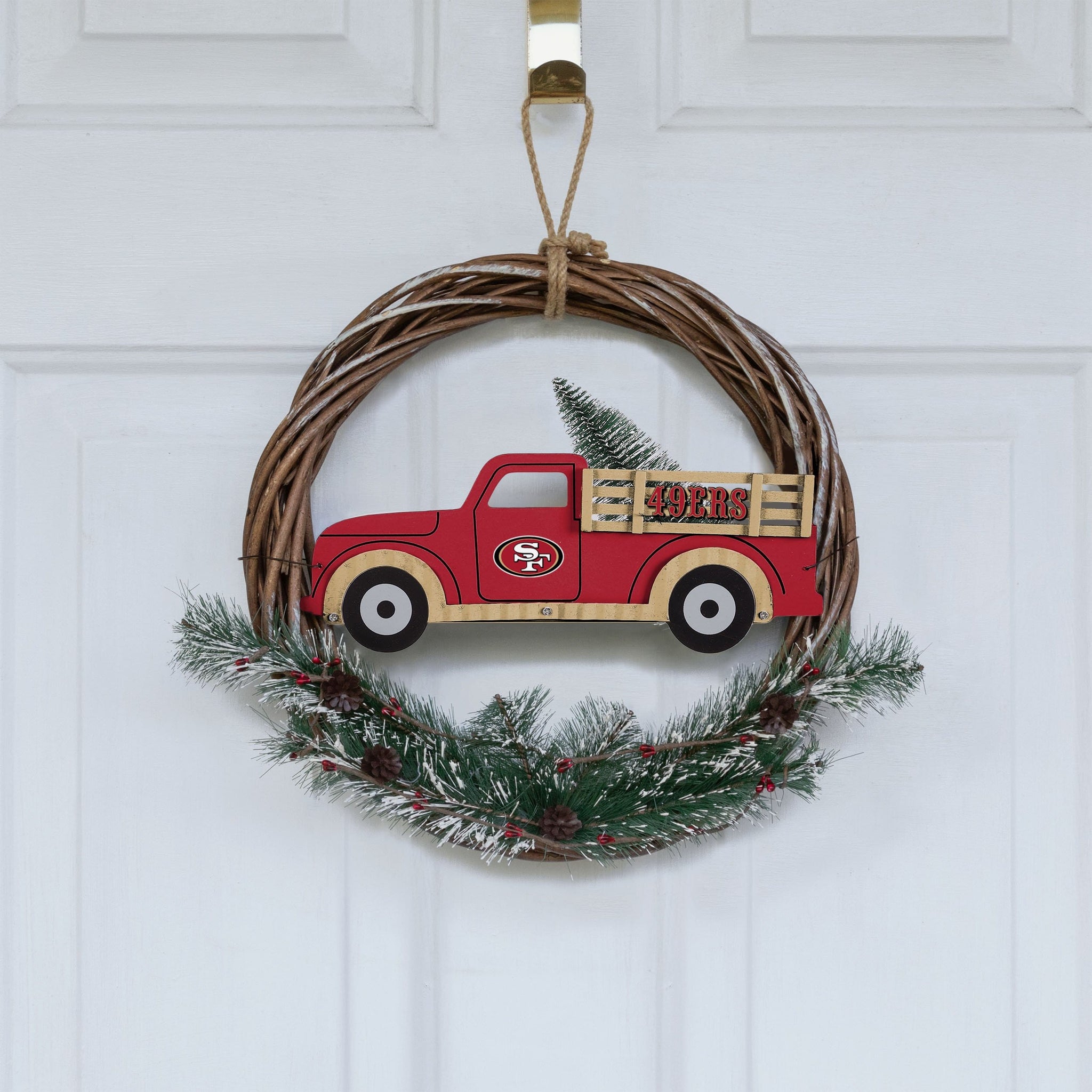 Special delivery! Hit the gas and zoom into the holidays by proudly displaying this San Francisco 49ers Wreath with Truck when you're decorating your home!