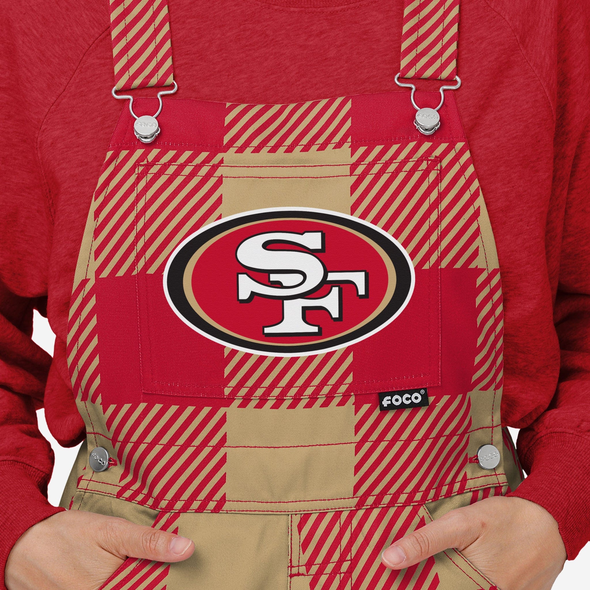 - All-over team-colored design: These overalls are covered in the official San Francisco 49ers colors, so you can show your team spirit with pride.