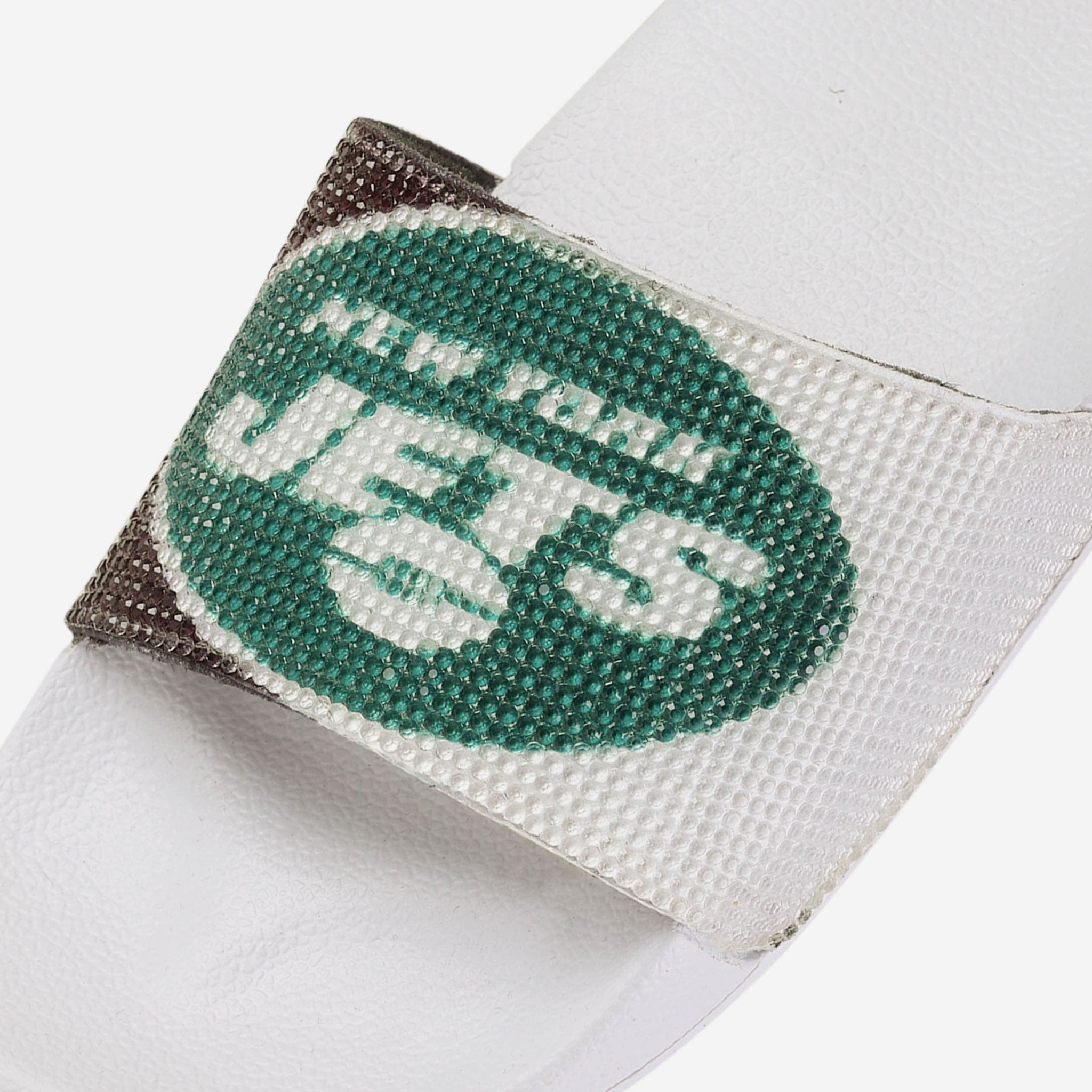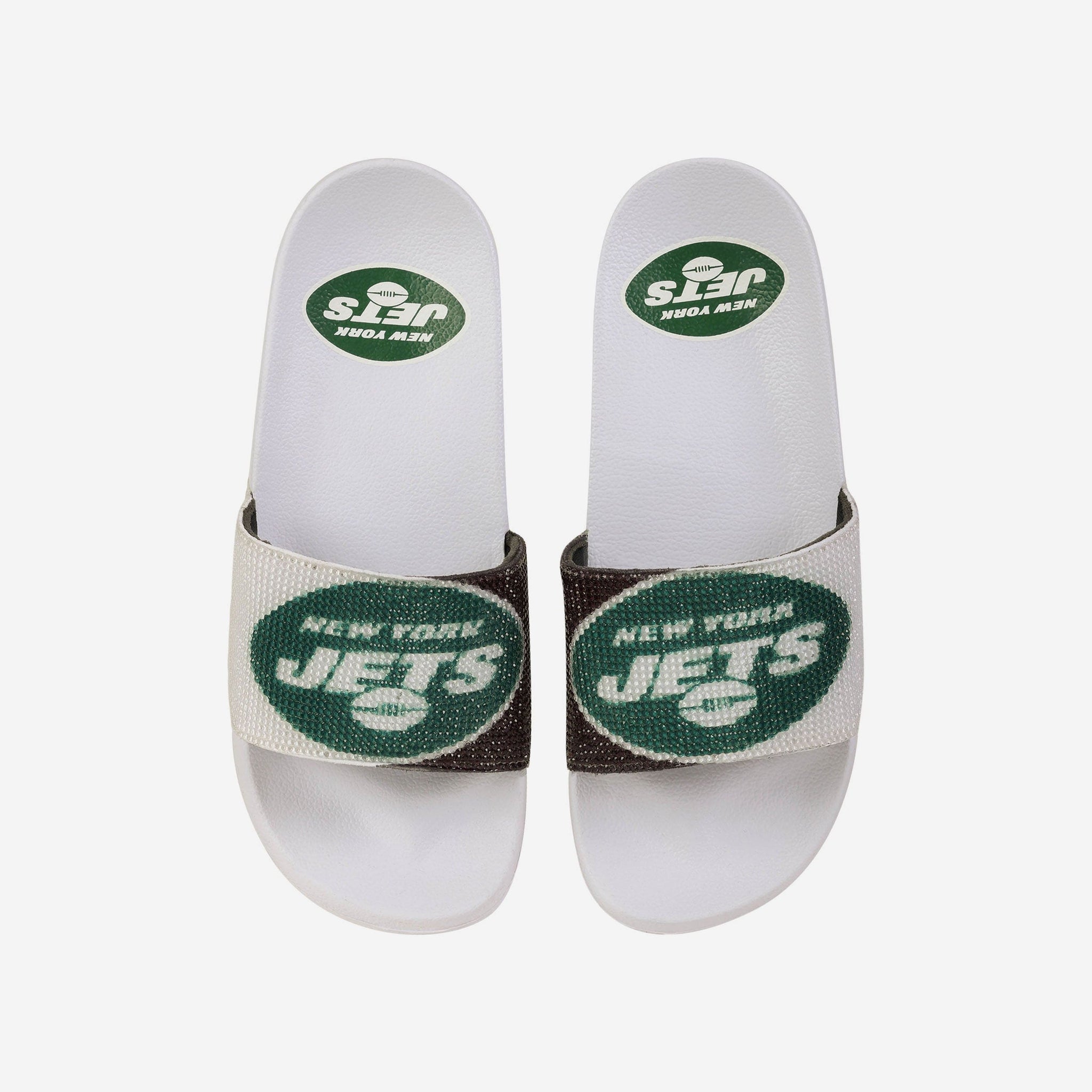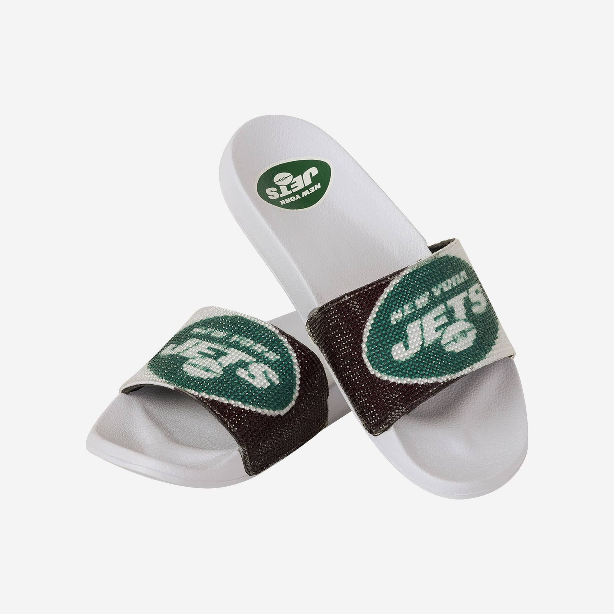 These New York Jets Women's Big Logo Shimmer Slides are the jewel of fresh fan footwear! Let your team spirit shine like a beacon of awesome!