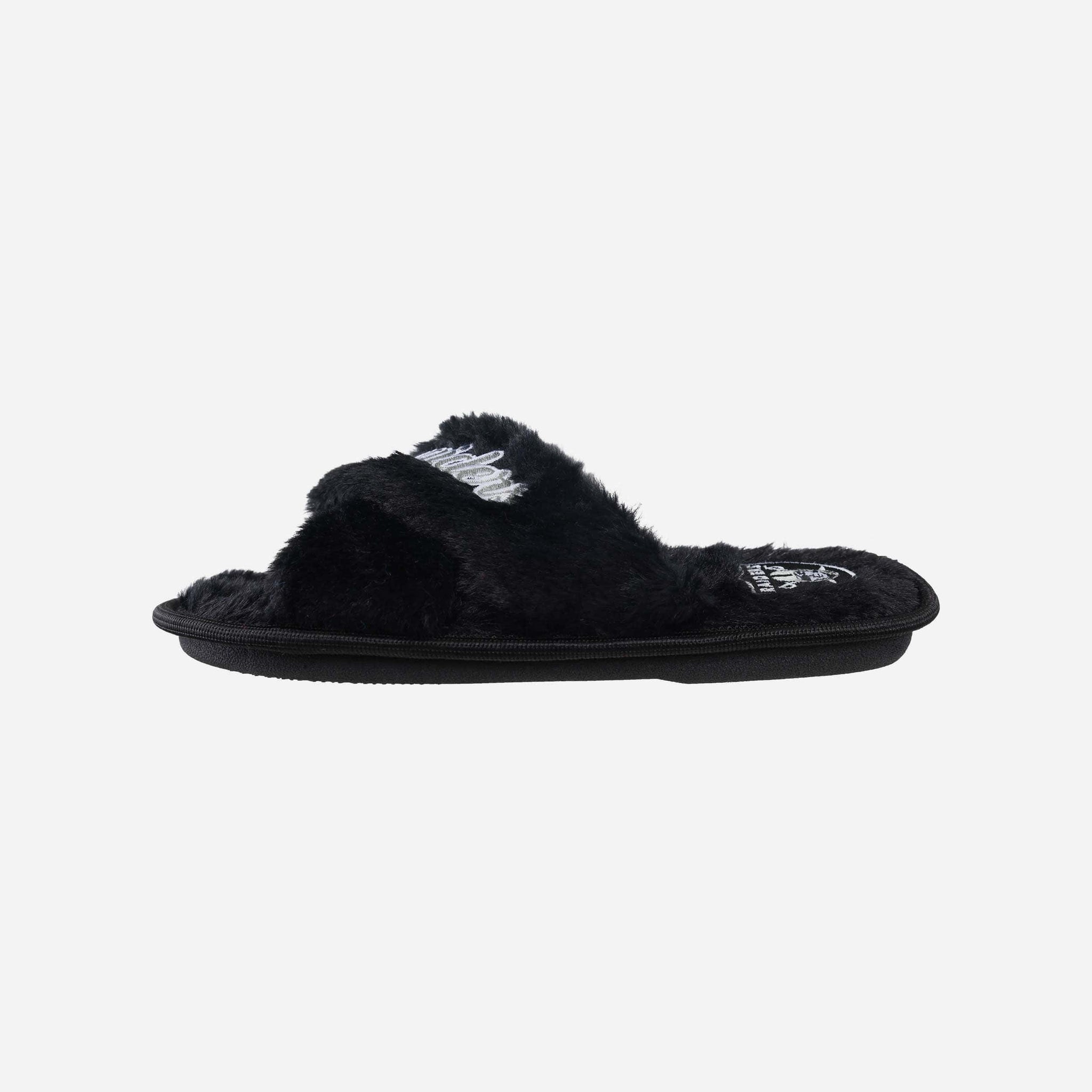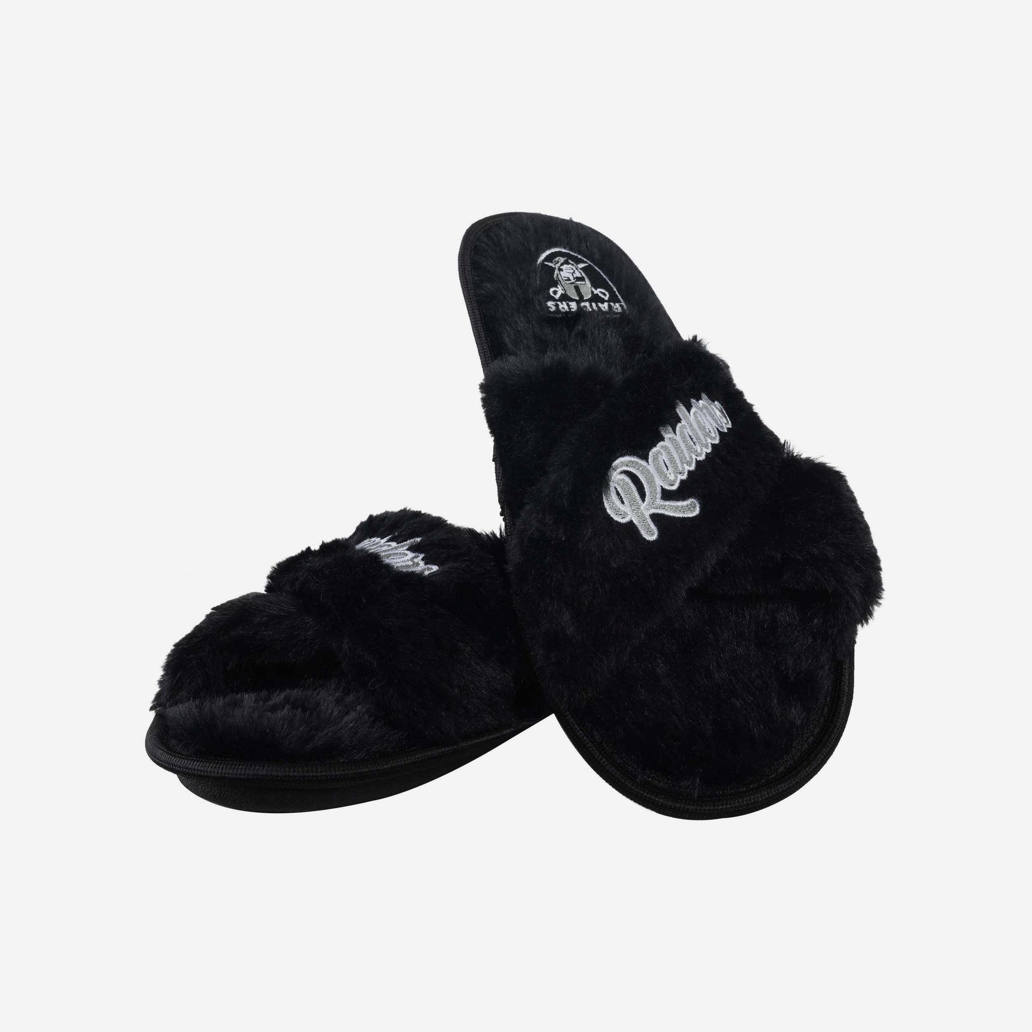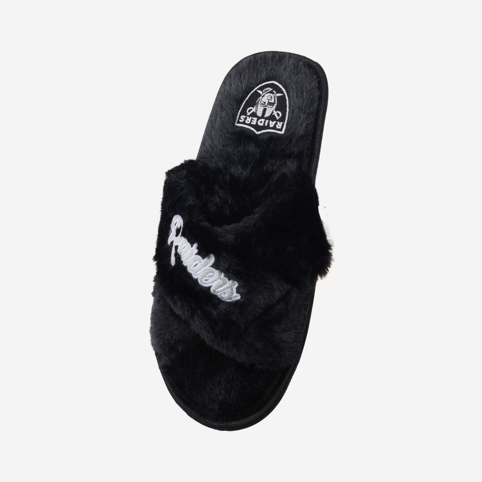 Slip in to something fuzzy, festive, and oh, so fan-tastic on your relaxing days at home. These Las Vegas Raiders Women's Script Wordmark Fur Cross Slides are the best way to rep the team while you kick back and watch the game on TV.