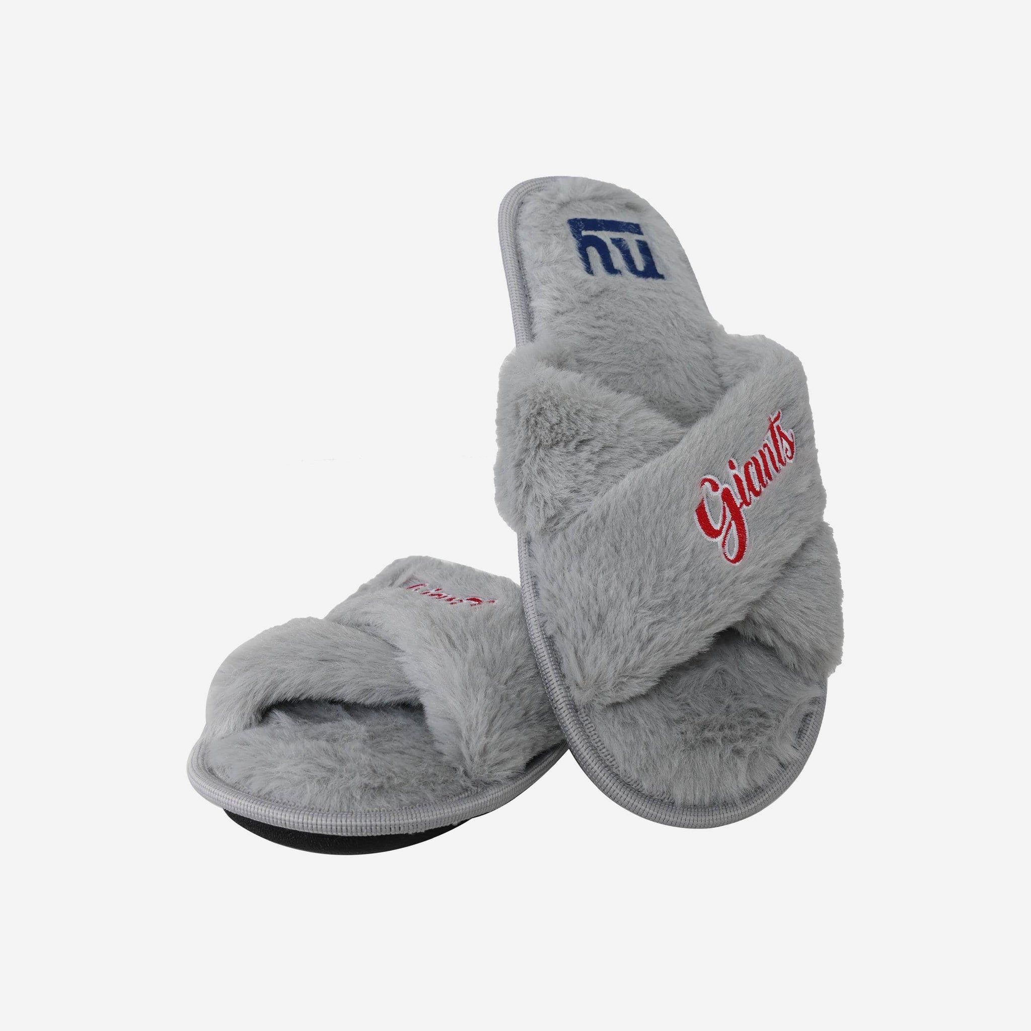 New York Giants Womens Script Wordmark Fur Cross Slide