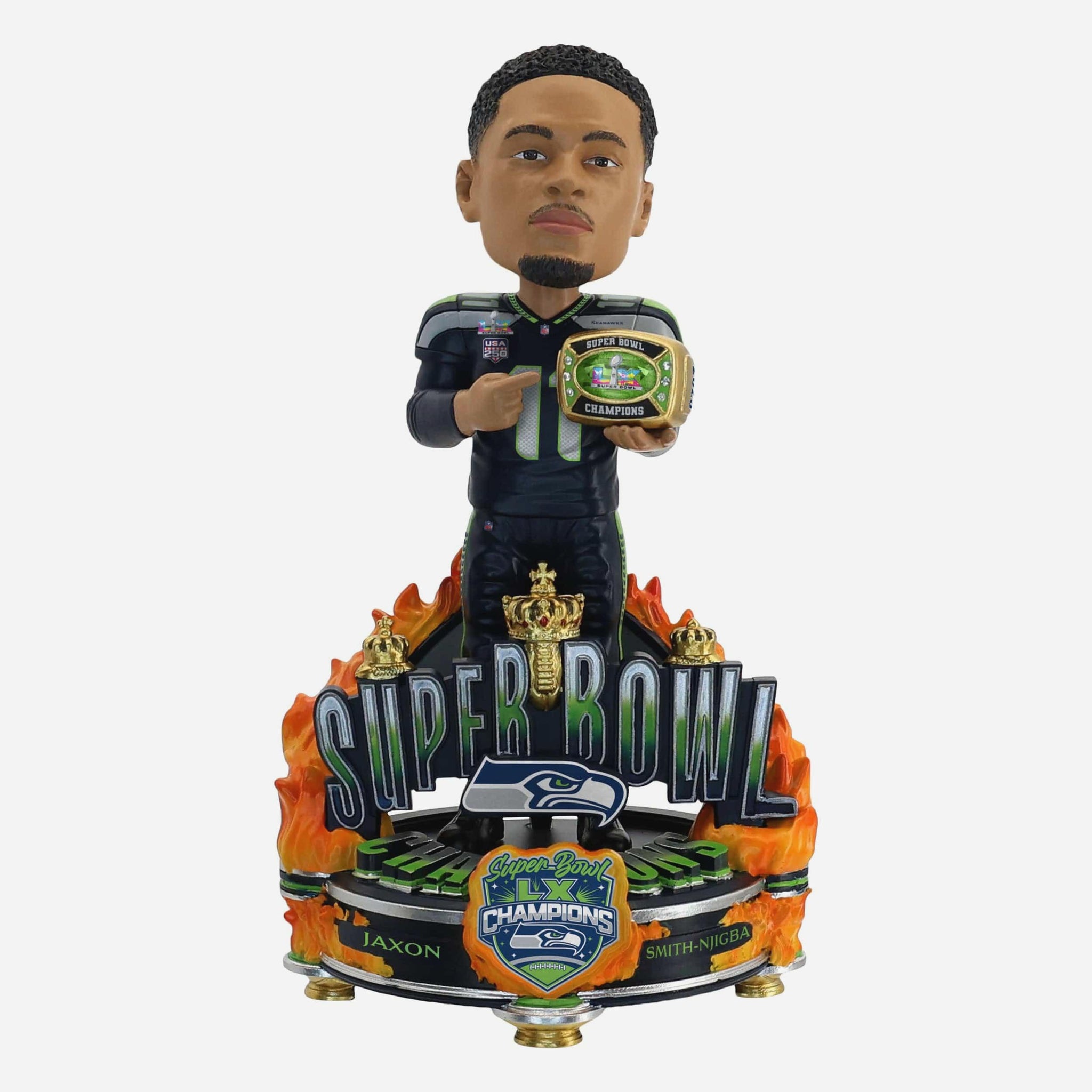 Celebrate the ultimate gridiron glory in style! Commemorate a championship season with this Jaxon Smith-Njigba Seattle Seahawks Super Bowl LX Champions Celebration Bobblehead.