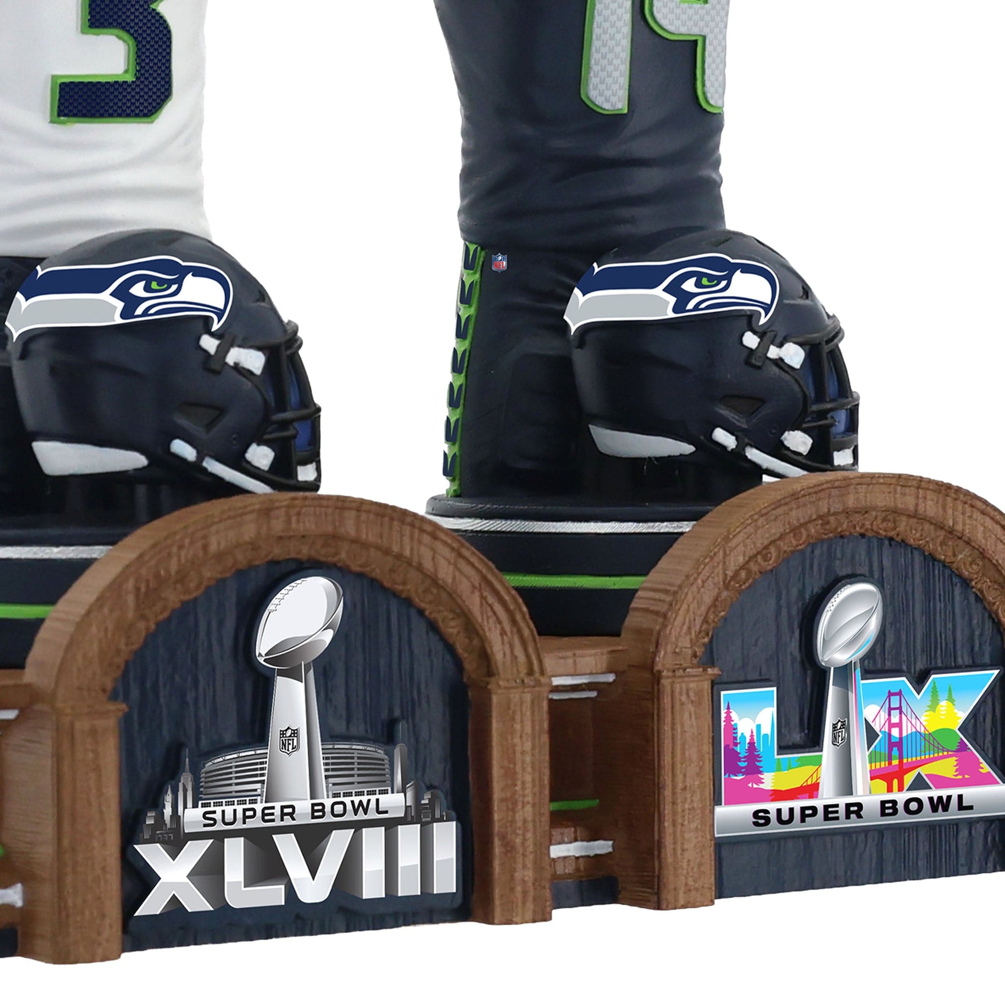 Celebrate championship history with the Seattle Seahawks Super Bowl LX Champions Historical Jersey Bust Bobblehead — a premium collectible honoring iconic Seahawks quarterbacks and their legendary uniforms.