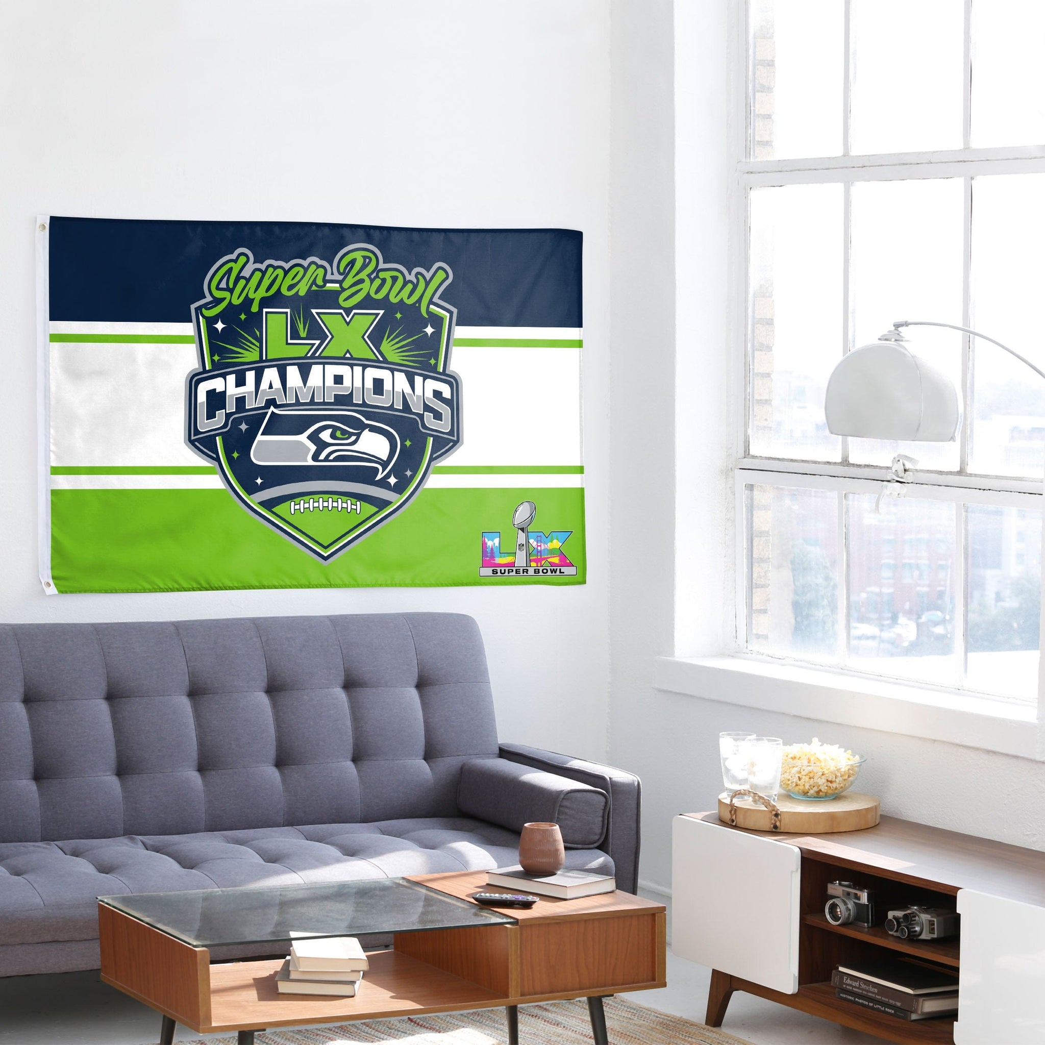 Seattle Seahawks Super Bowl LX Champions Horizontal Flag FOCO - FOCO.com