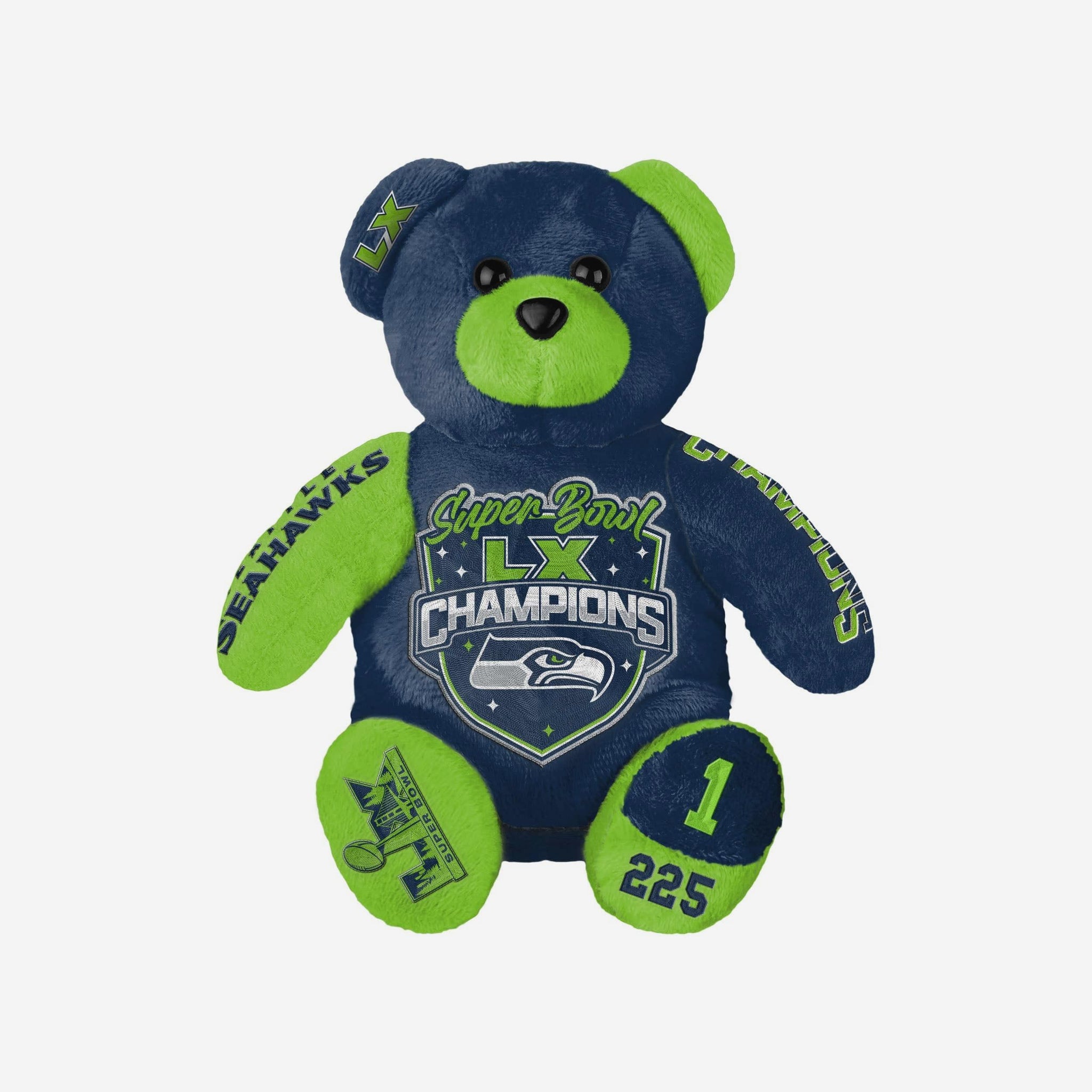 Seattle Seahawks Super Bowl LX Champions Team Beans Embroidered Bear FOCO - FOCO.com