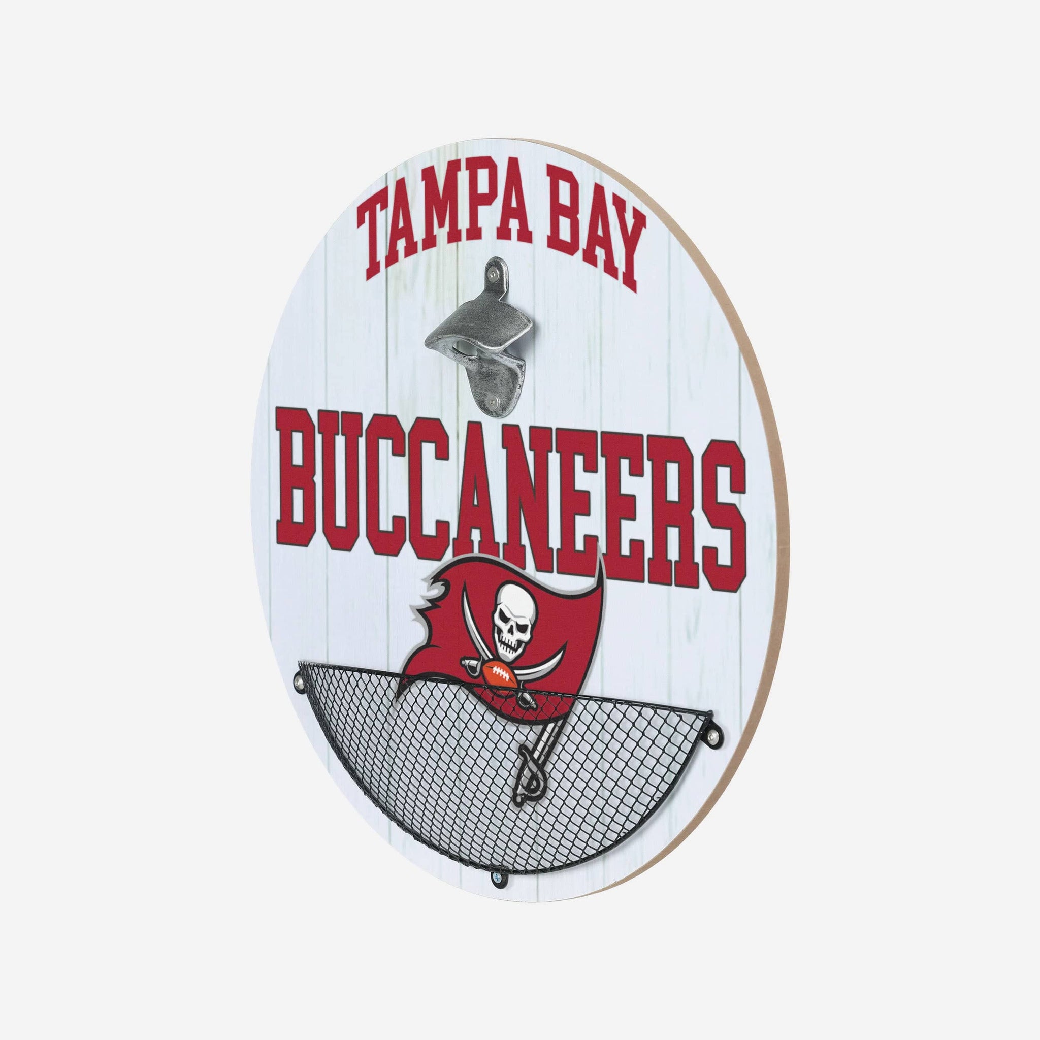 Pop the top and let the cap drop. Cleanup after gameday in the fancave is easy when you've got this Tampa Bay Buccaneers Bottle Opener Cap Catcher Wall Sign.