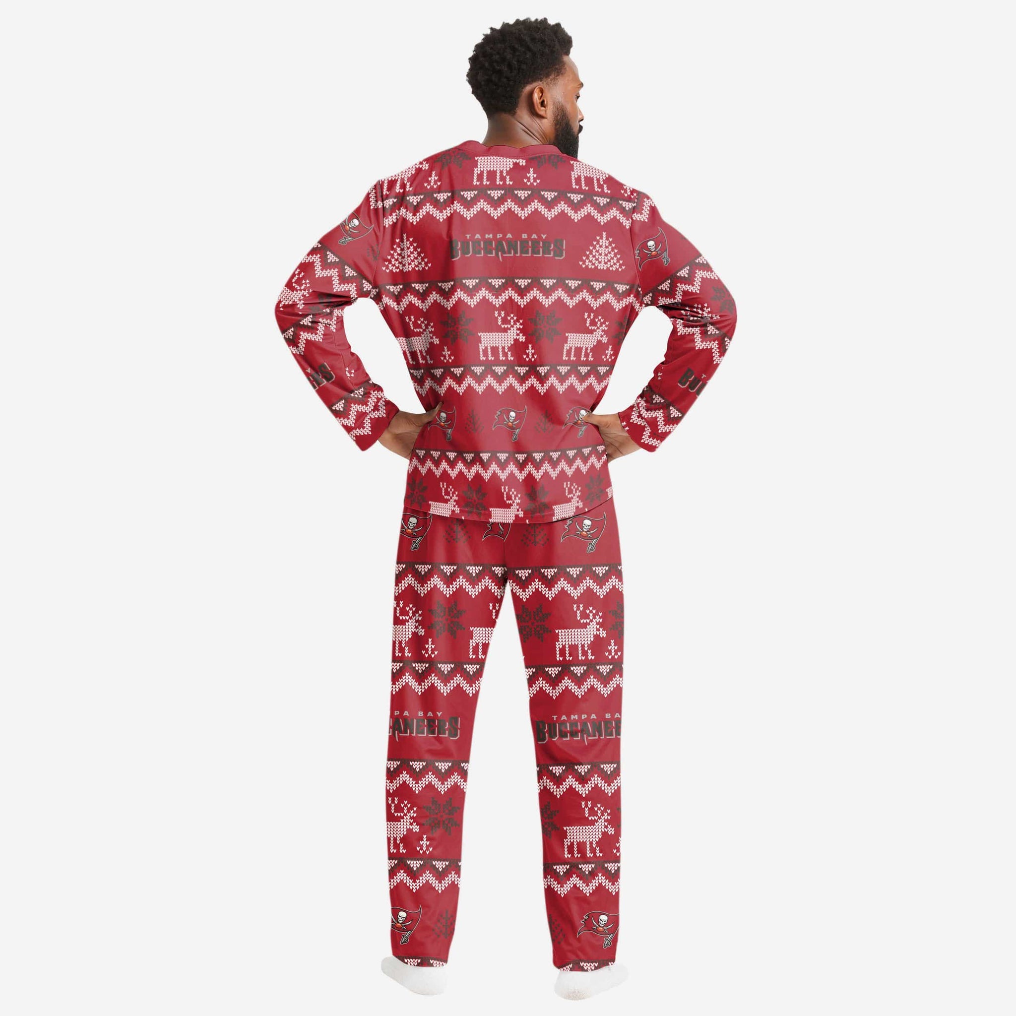 Get some matching family pajamas and dress to impress this holiday season! You won't want to miss these men's team pajamas! These men's PJ's are comfortable and show off your team spirit in the form of some sweet men's jammies. Introducing the Tampa Bay Buccaneers Ugly Pattern Family Holiday Pajamas! Don't forget to take your holiday photo with the whole family wearing matching Christmas pajamas!