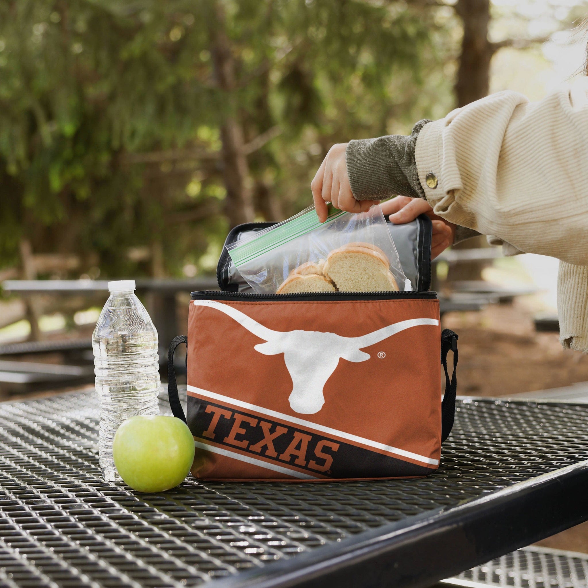Tailgates. The beach. Road trips. No matter where you go, take your fandom (and your beverages) along for the ride with the Texas Longhorns Big Logo Stripe 6 Pack Cooler.