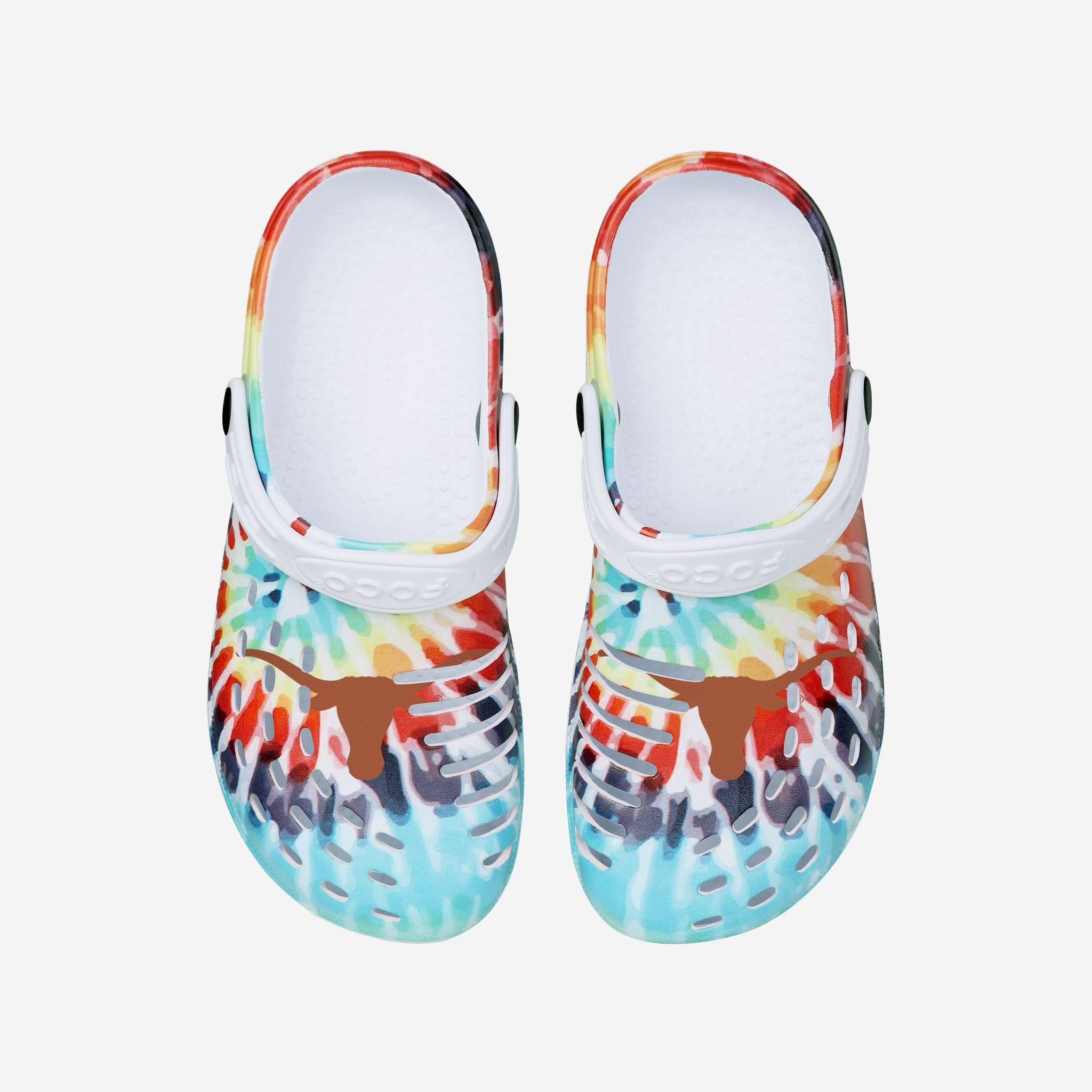 Peace. Love. Tie-dye. Step back in time with some style from yesteryear by rocking these Texas Longhorns Women's Tie-Dye Clogs with Straps.