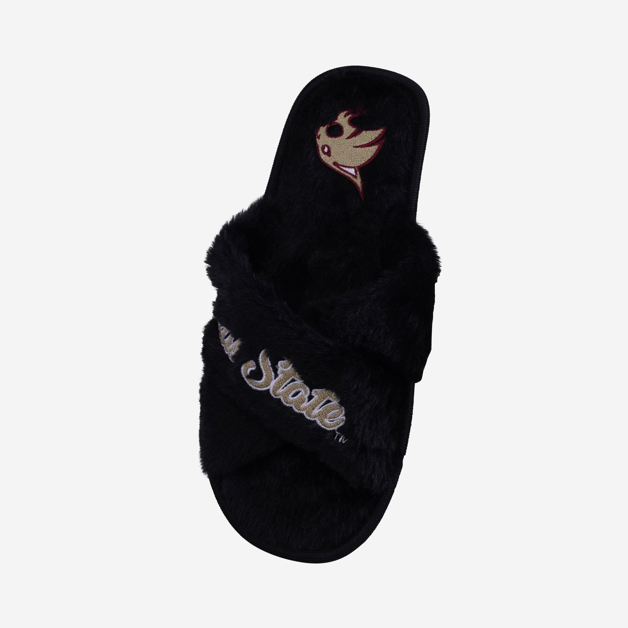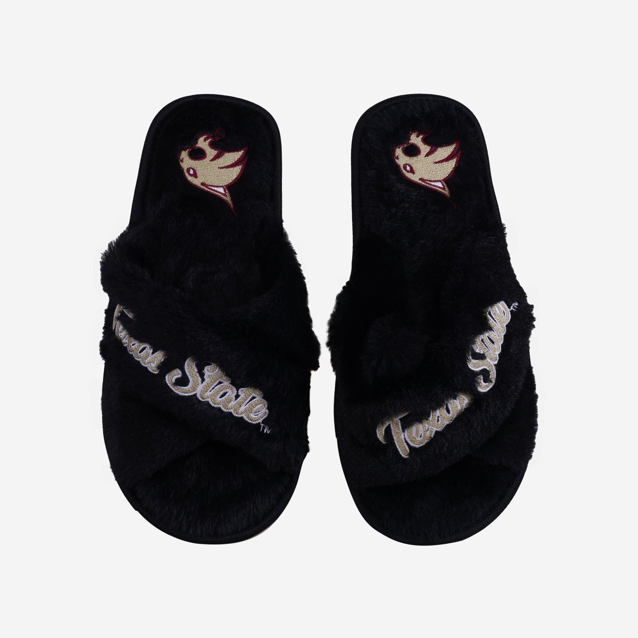 Slip in to something fuzzy, festive, and oh, so fan-tastic on your relaxing days at home. These Texas State Bobcats Women's Script Wordmark Fur Cross Slides are the best way to rep the team while you kick back and watch the game on TV.