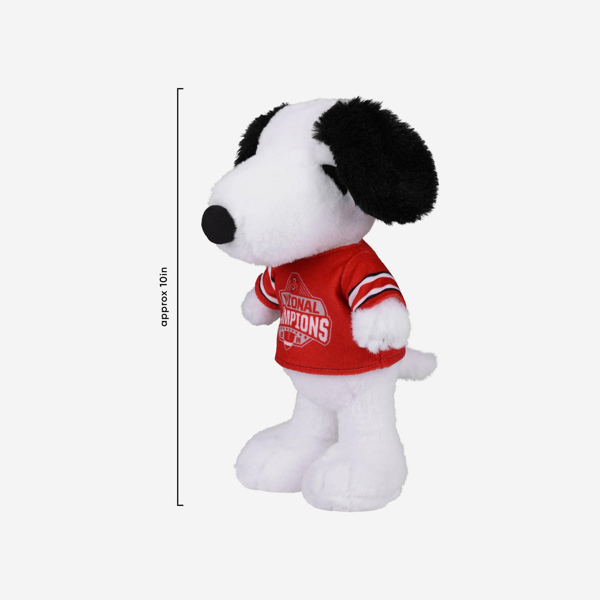 • Plush Snoopy sporting a jersey with a commemorative championship logo display