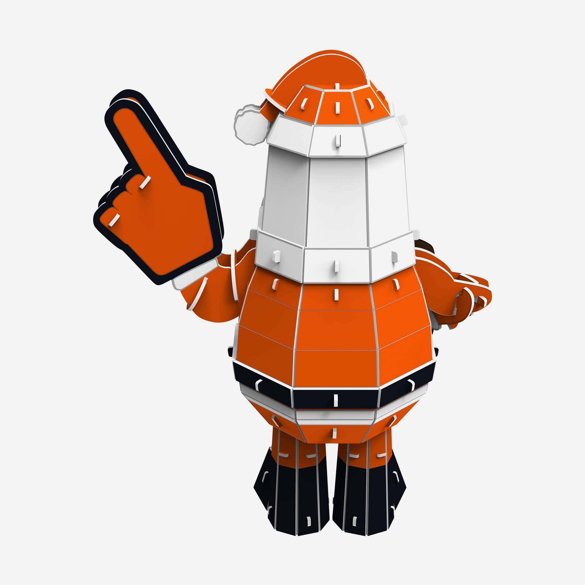 - Team-colored Santa outfit and fan finger with team logo displays on hat, shirt, and fan finger, in case there were any doubts where your allegiances lie