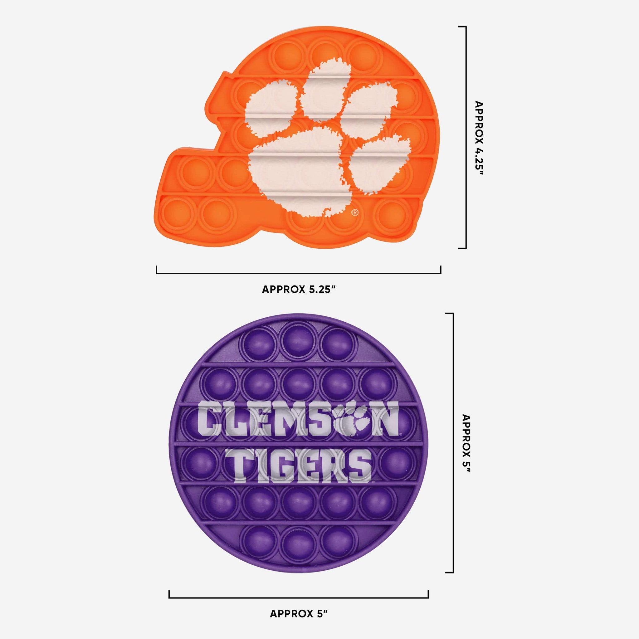 PUSH-ITZ to the limit! This Clemson Tigers 2 Pack Helmet & Circle Push-Itz Fidget is here to help you rep the team and relieve some of life's stress and anxiety!