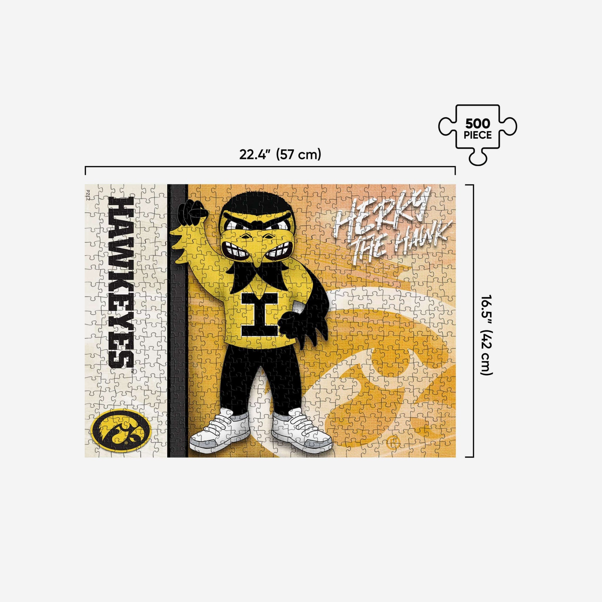 Enjoy the fun of a t-shirt toss at the game from the comfort of your own home when you put together this Herky the Hawk Iowa Hawkeyes Mascot 500 Piece Jigsaw PZLZ. It's as impressive as the mascot's dance moves during a game break.