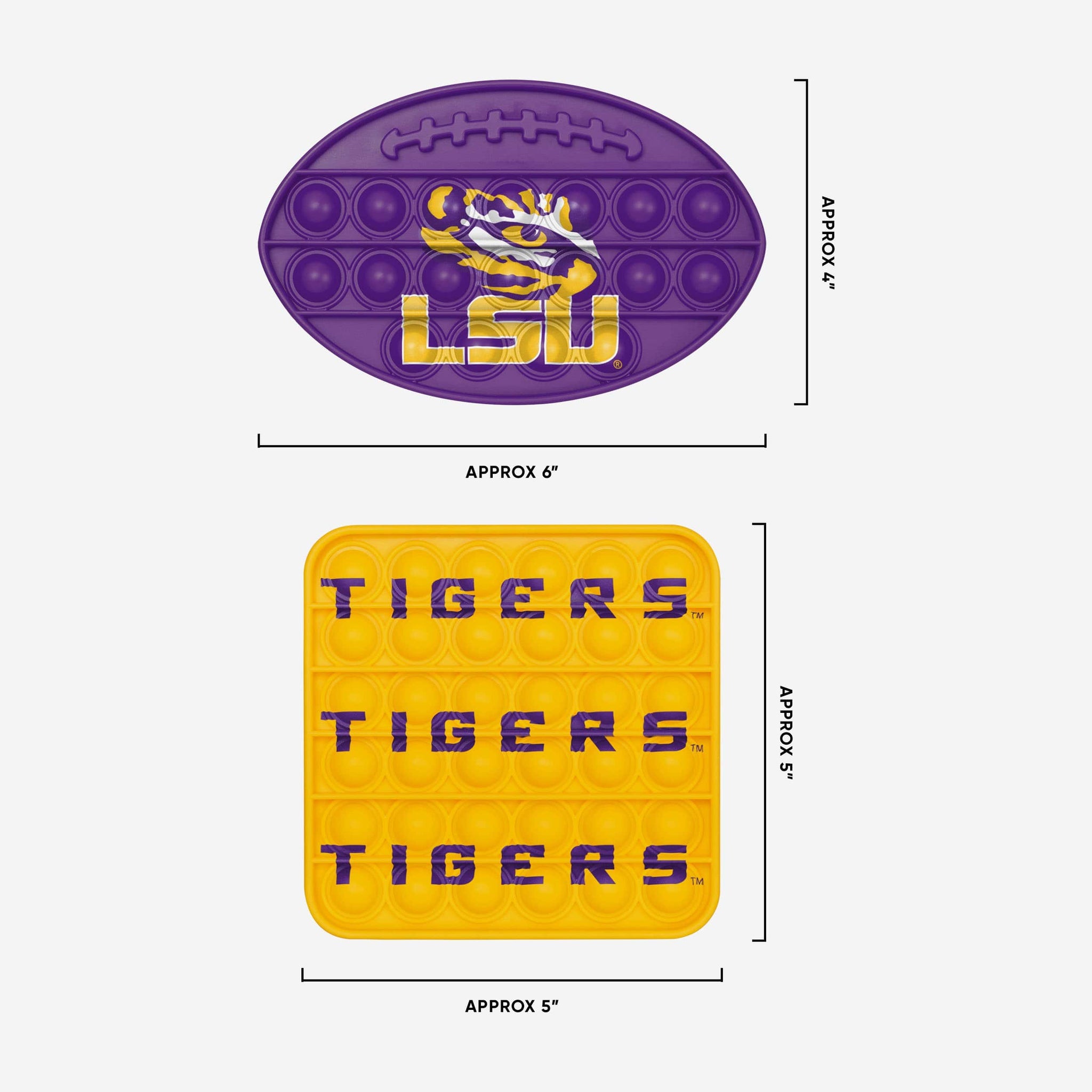 Let's get it POPPIN'! Relieve stress and anxiety with this LSU Tigers 2 Pack Ball & Square Push-Itz Fidget!