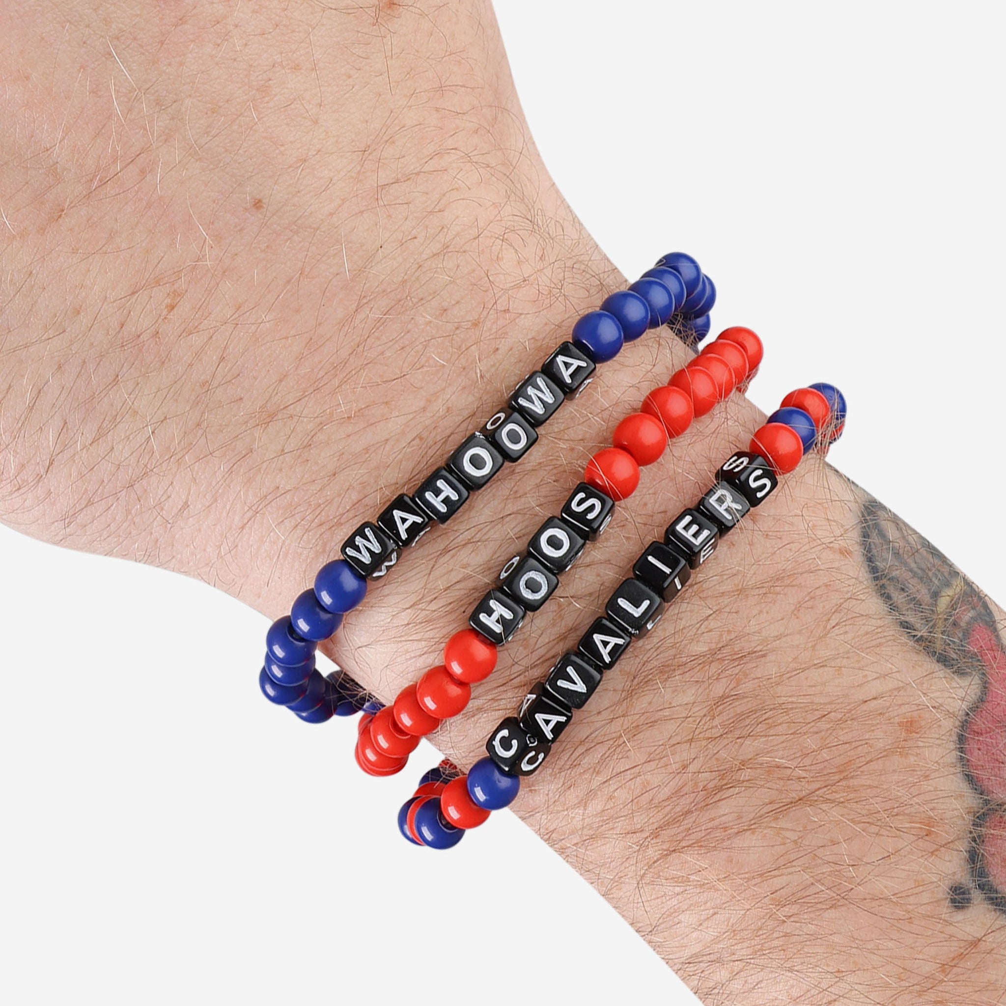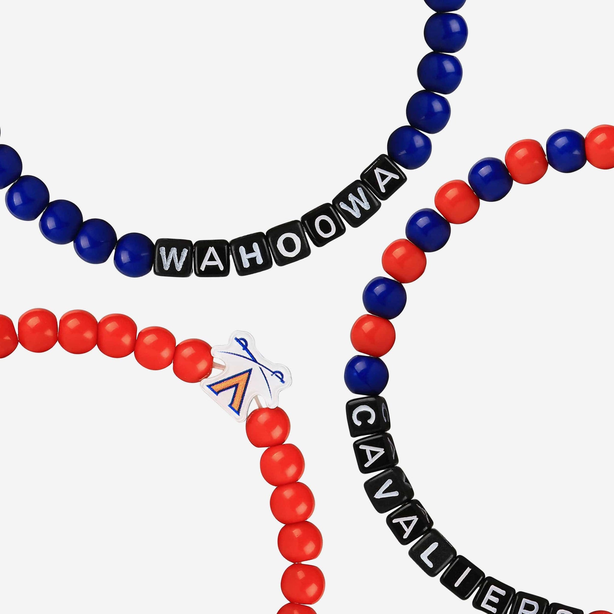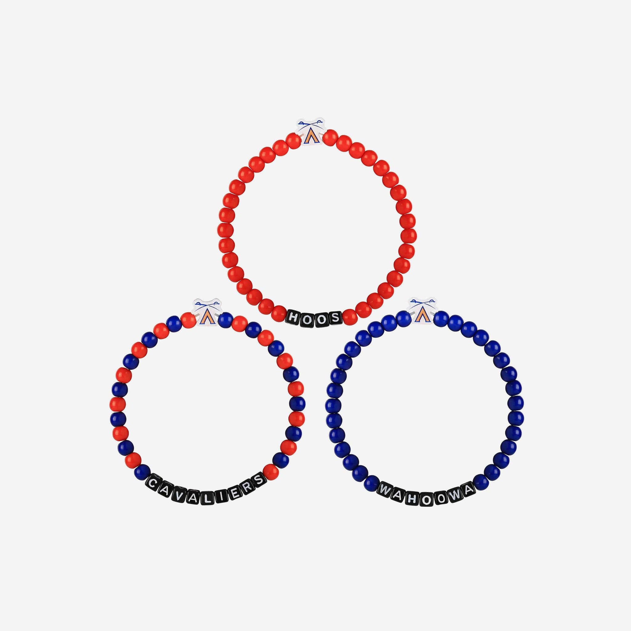 A whole new way to rep the team in style is here. Step up your fan fashion sense with this Virginia Cavaliers 3 Pack Beaded Friendship Bracelet. These matching friendship bracelets have an all-over team-colored design and team logo displays, which makes them the perfect way to show your support for the Virginia Cavaliers on gamedays and every day in between.