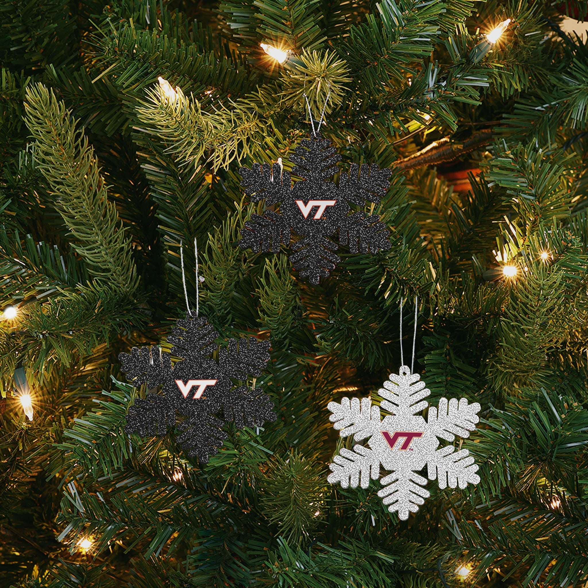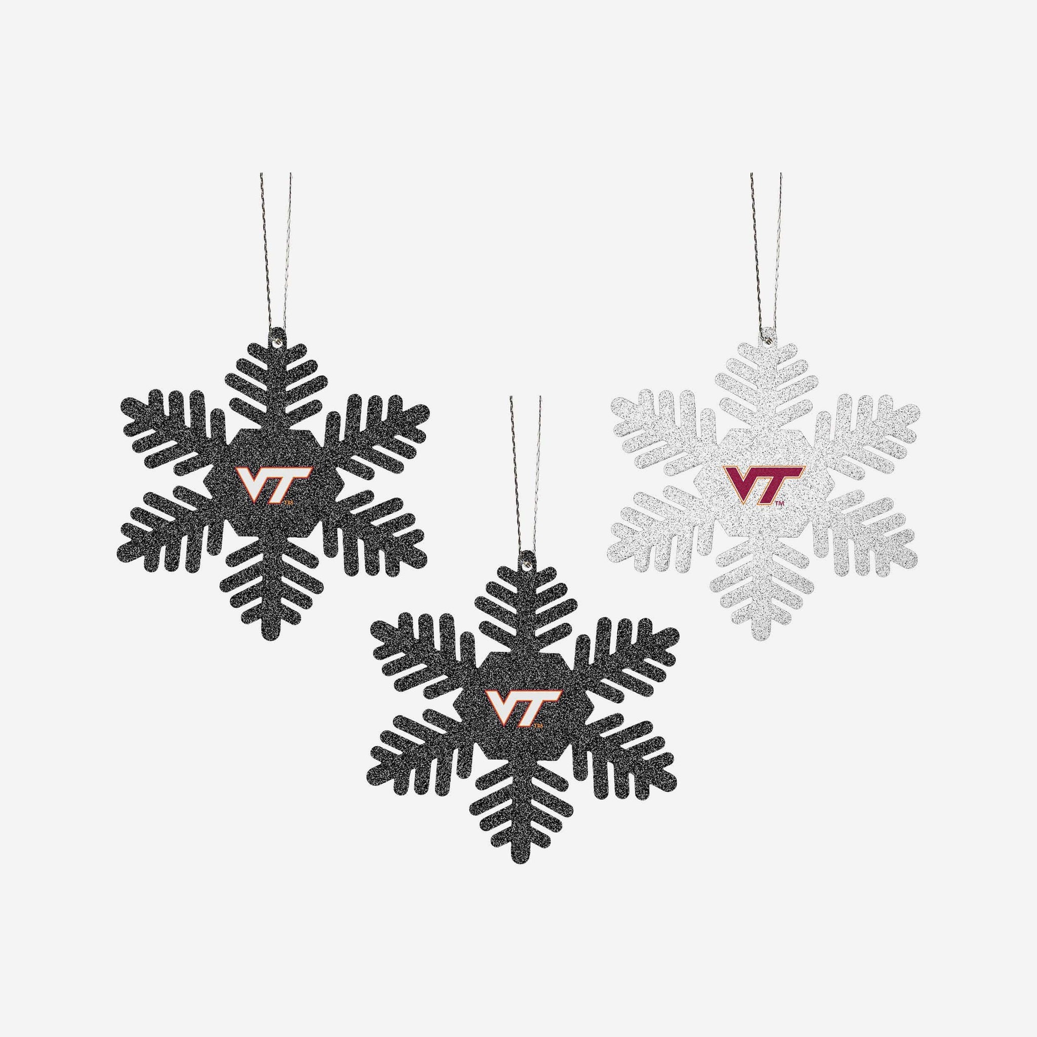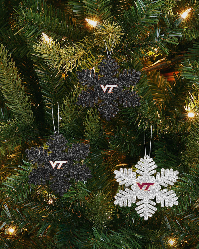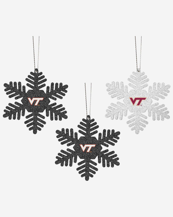 Virginia Tech Hokies 3 Pack Metal Glitter Snowflake Ornament FOCO - FOCO.com