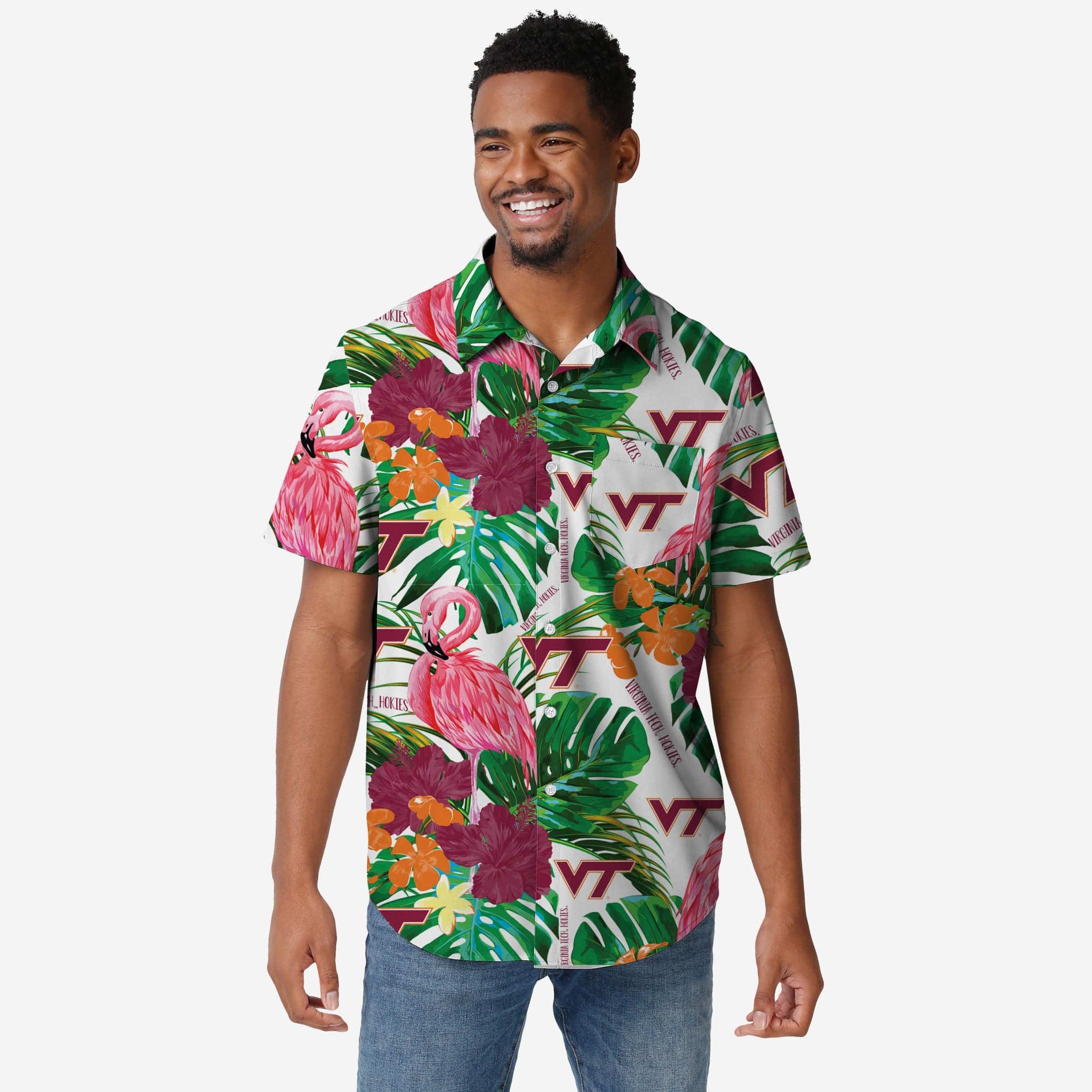Aloha, party people! No need to set your watch - You're always on island time when you're rocking this Virginia Tech Hokies Flamingo Button Up Shirt.