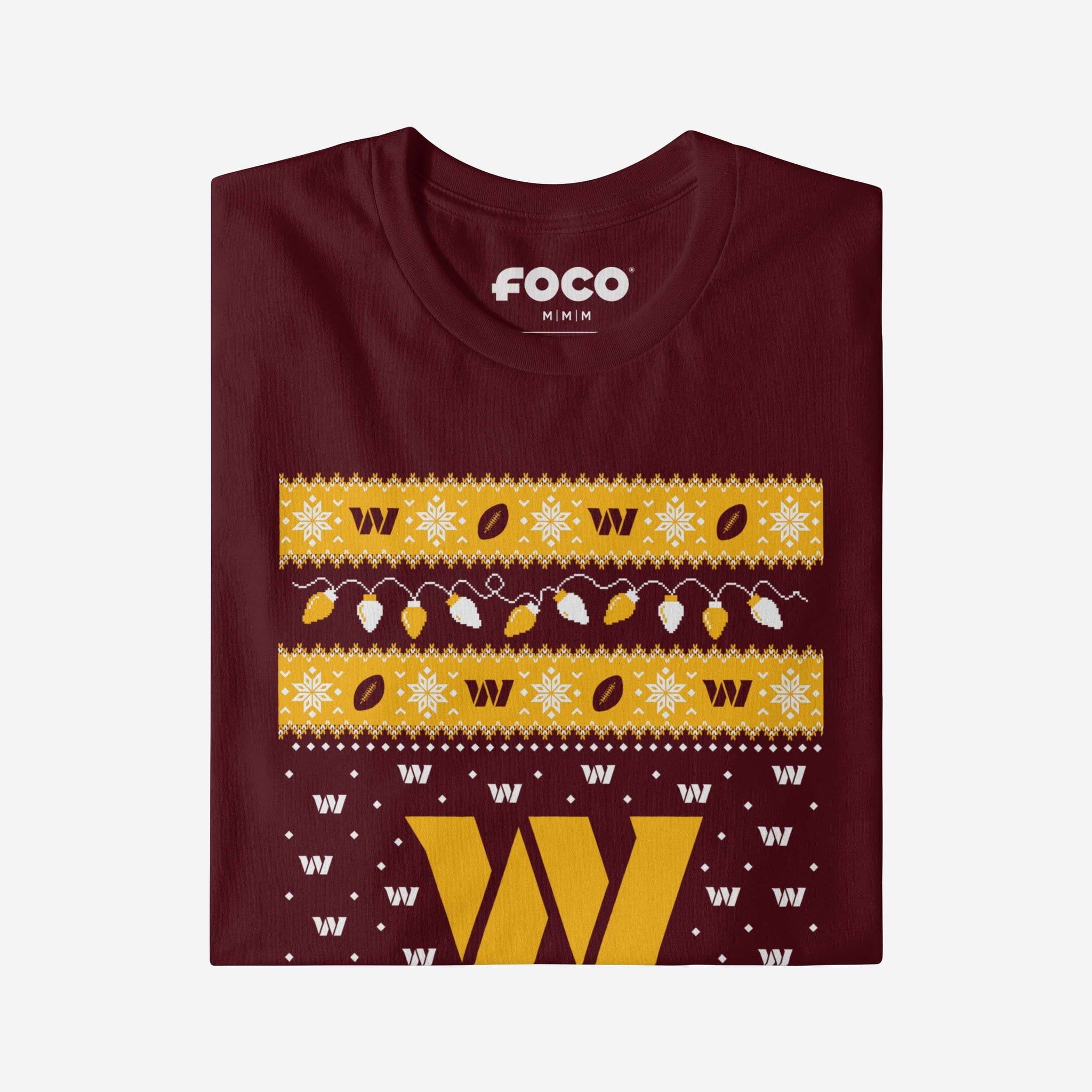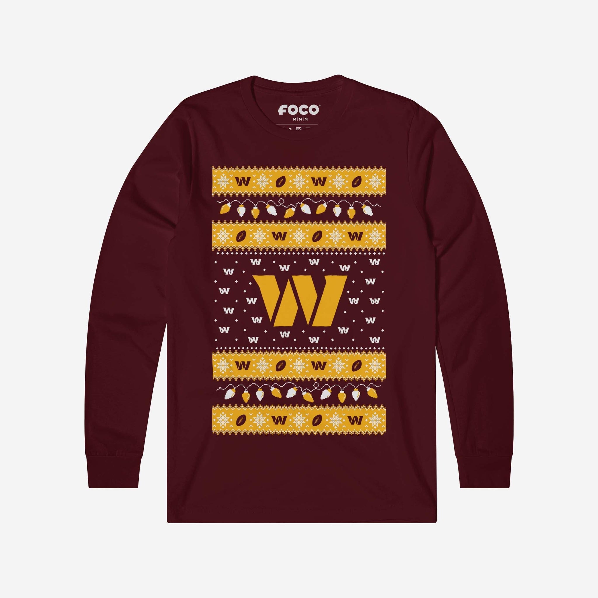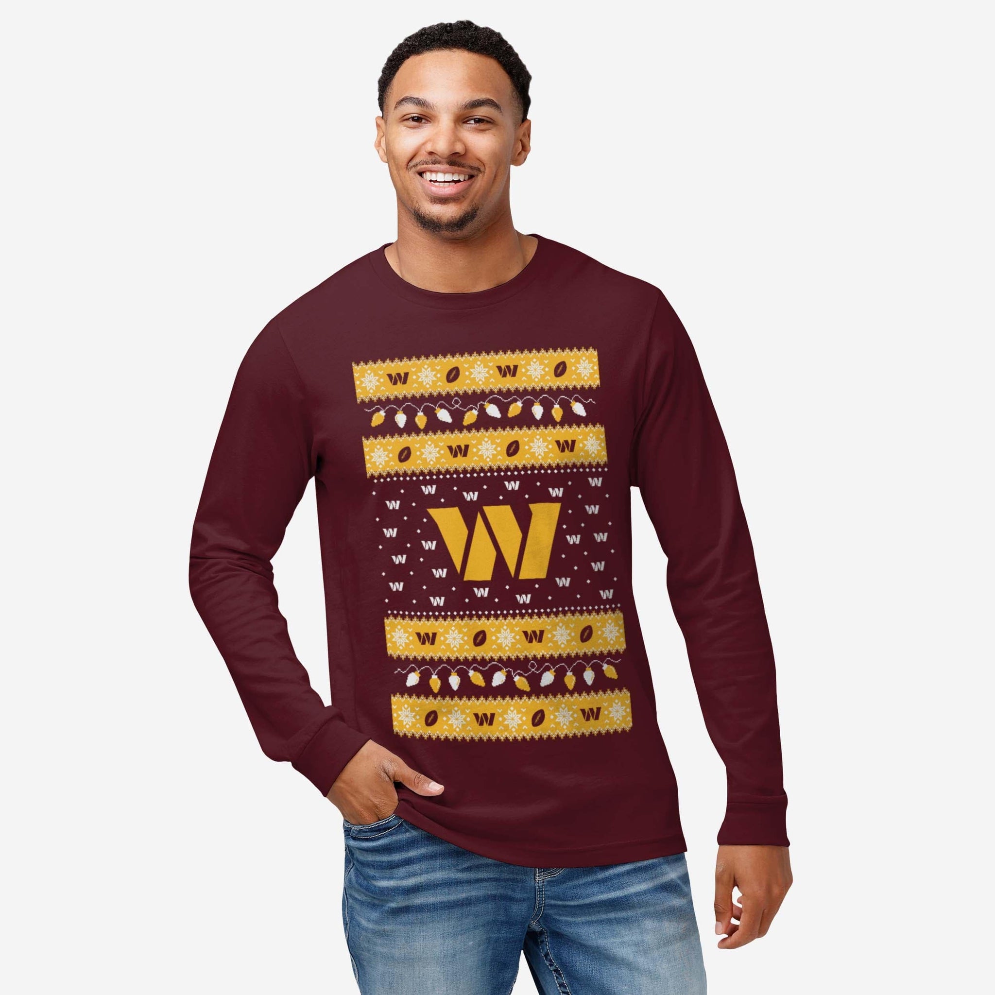 Santa's making a list, and he’s checking it twice! Prove that you’re the nicest fan around with the Washington Commanders Holiday Lights Sweater Long Sleeve T-Shirt.