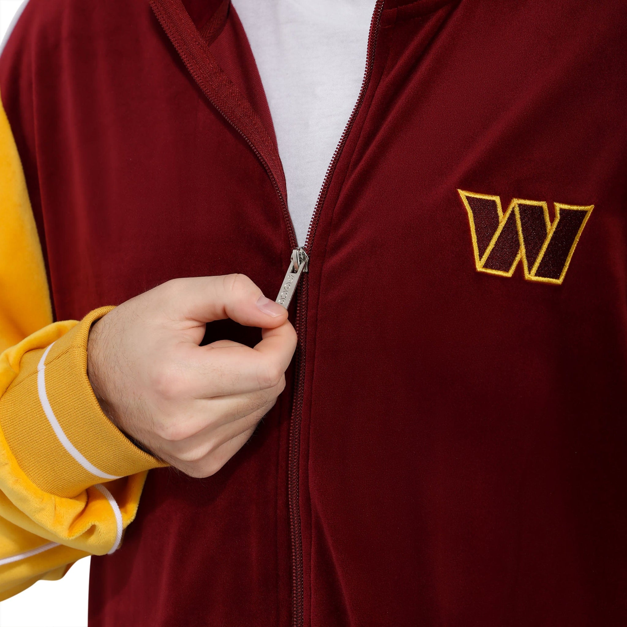 Soft, stylish, and straight-up iconic. Elevate your fan fit with this Washington Commanders Two Tone Velour Zip Up Top! Featuring a sleek two-tone design, ultra-soft velour fabric, and a full front zipper, this top brings comfort, warmth, and team pride together in one stylish package.