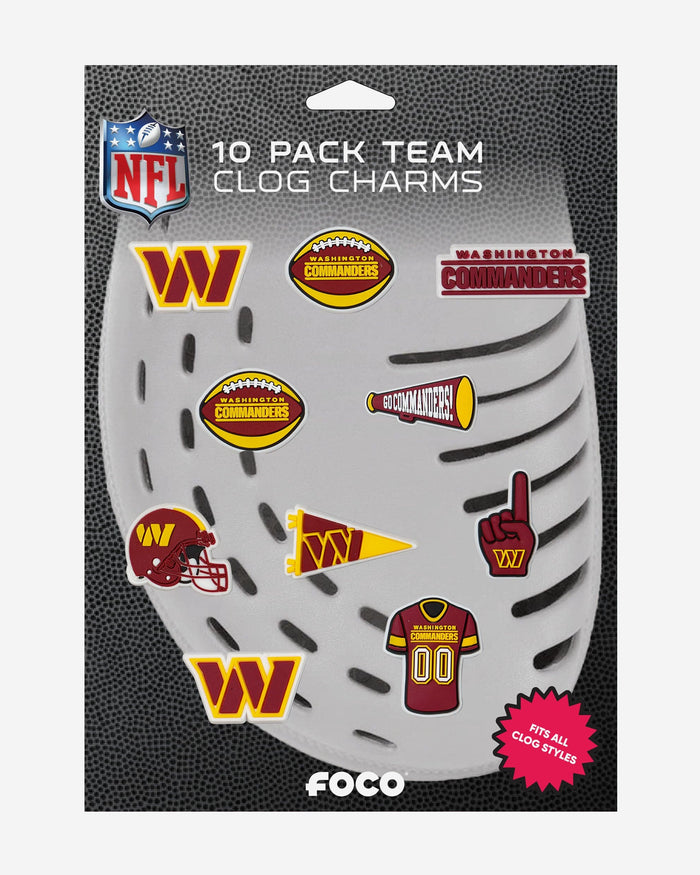 These Washington Commanders 10 Pack Team Clog Charms are a perfect ten. Step up your clog style game in a whole new way.