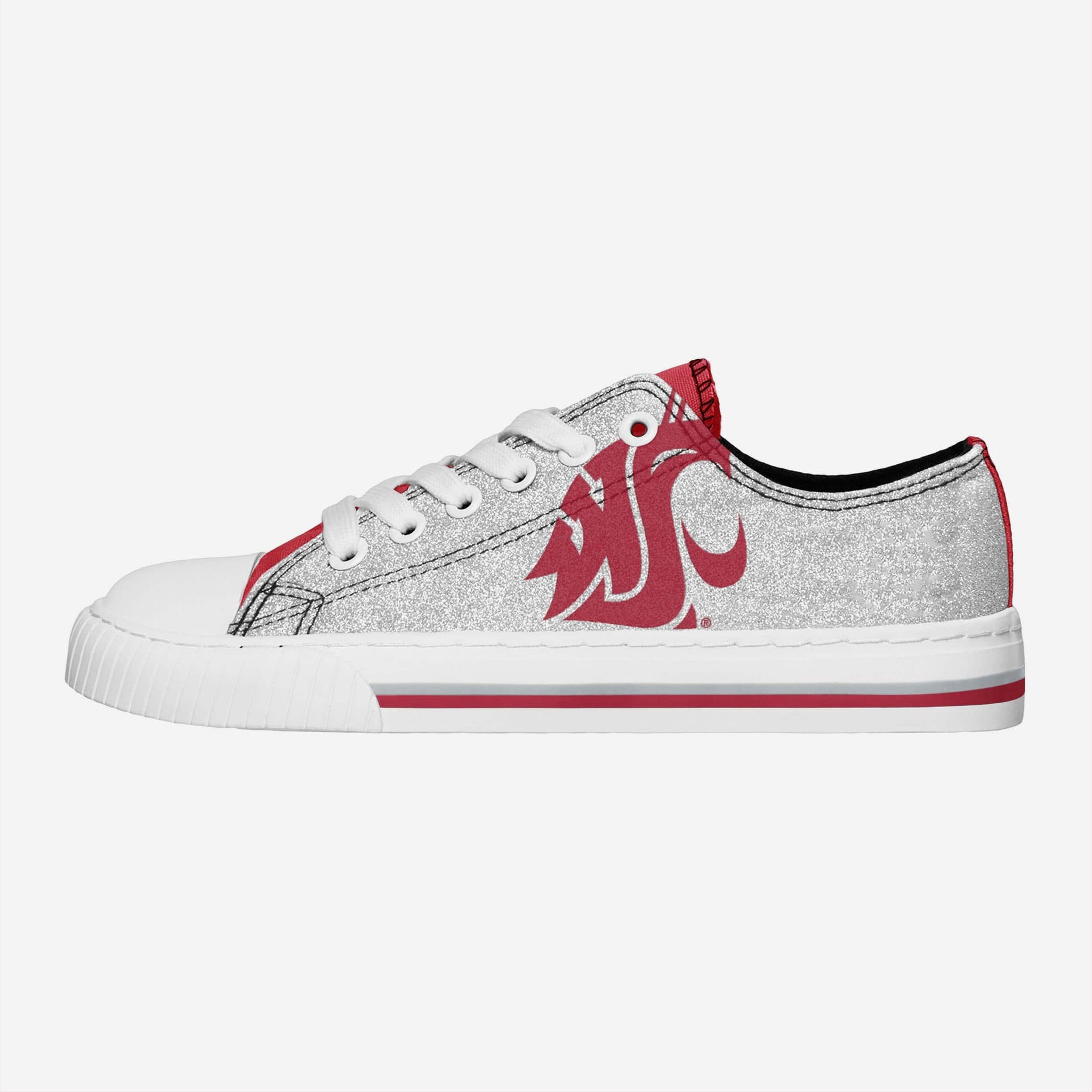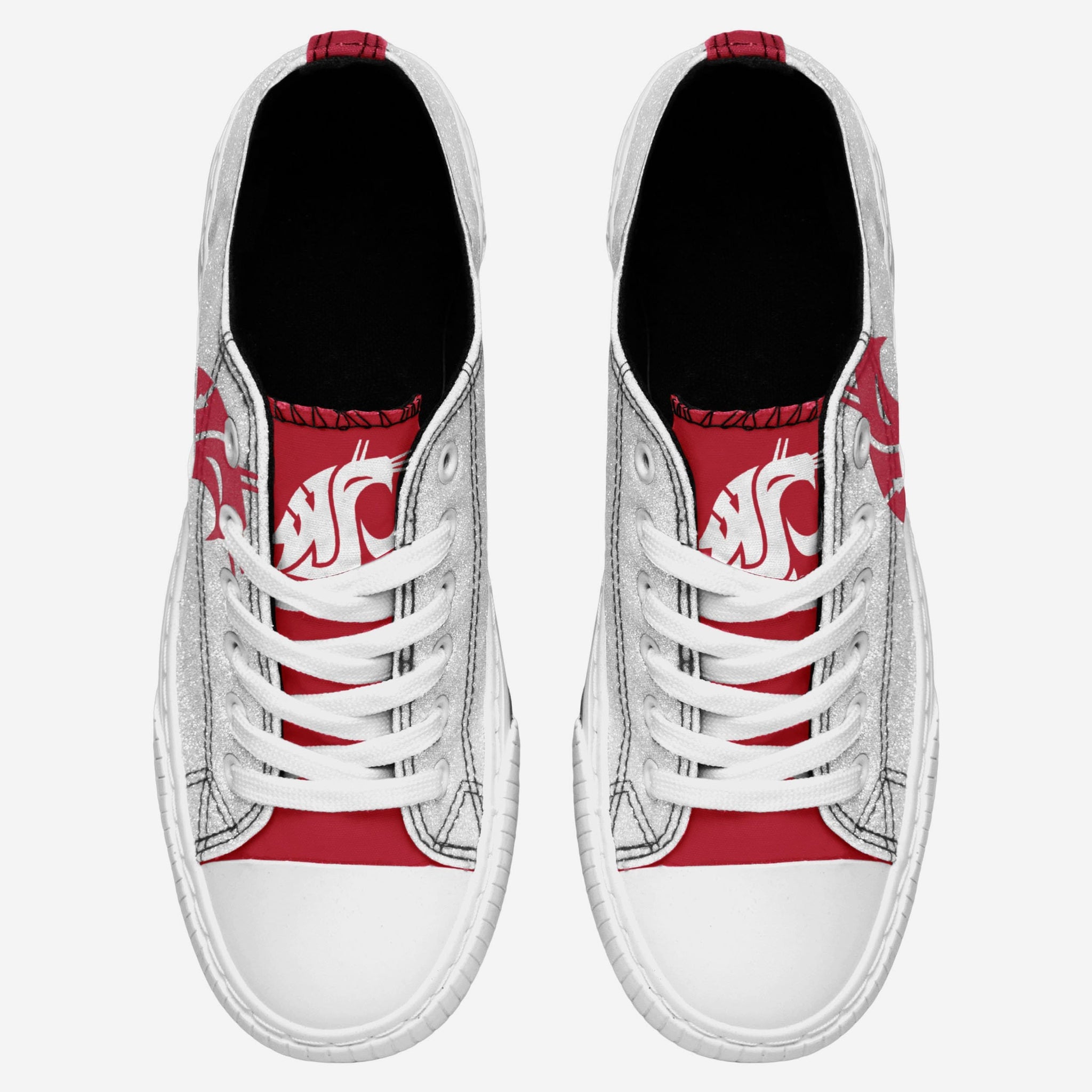 Shouldn't your shoes shine as bright as your fandom? That was a rhetorical question. Of course they should. Lace up these Washington State Cougars Women's Glitter Low Top Canvas Shoes and brighten up your sense of fan fashion.