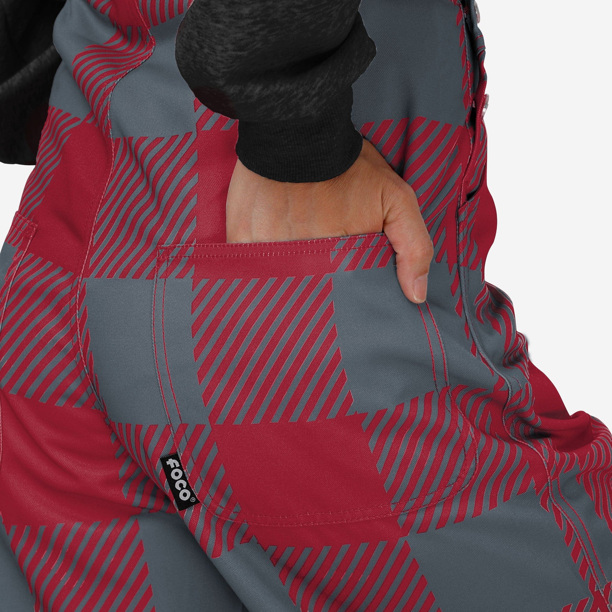 The bib pocket is perfect for storing your phone, makeup, jewelry, skincare products, fragrances, or other essentials, and the adjustable bib shoulder straps ensure a comfortable fit. Two back pockets provide even more storage space which will come in handy when you're out with the girls and showing off your trendy clothes. These overalls are made of sturdy and functional woven polyester canvas that is lightweight and breathable for maximum comfort while you're rocking this trendy and fashion-forward fan gear. They are long enough to provide coverage and durability, so you can focus on cheering on your team without worrying about your outfit. Just don't be surprised if a fellow fan asks for some help chopping wood when they see you in this epic lumberjack style.