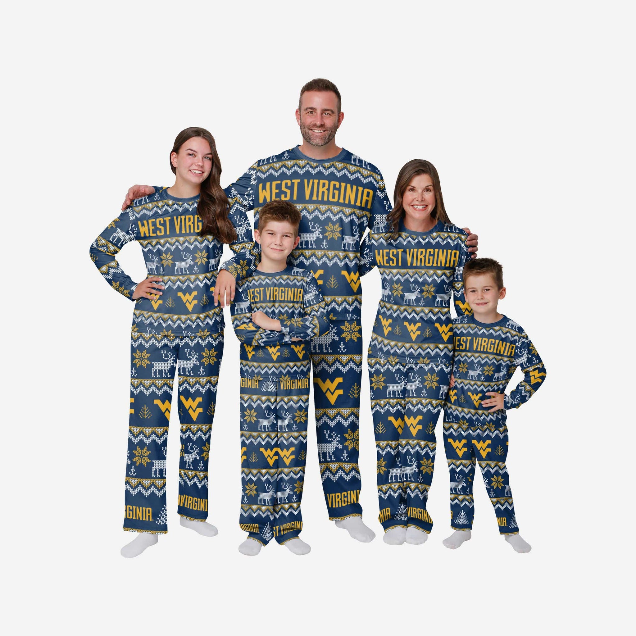 Get some matching family pajamas and dress to impress this holiday season! You won't want to miss these men's team pajamas! These men's PJ's are comfortable and show off your team spirit in the form of some sweet men's jammies. Introducing the West Virginia Mountaineers Ugly Pattern Family Holiday Pajamas! Don't forget to take your holiday photo with the whole family wearing matching Christmas pajamas!