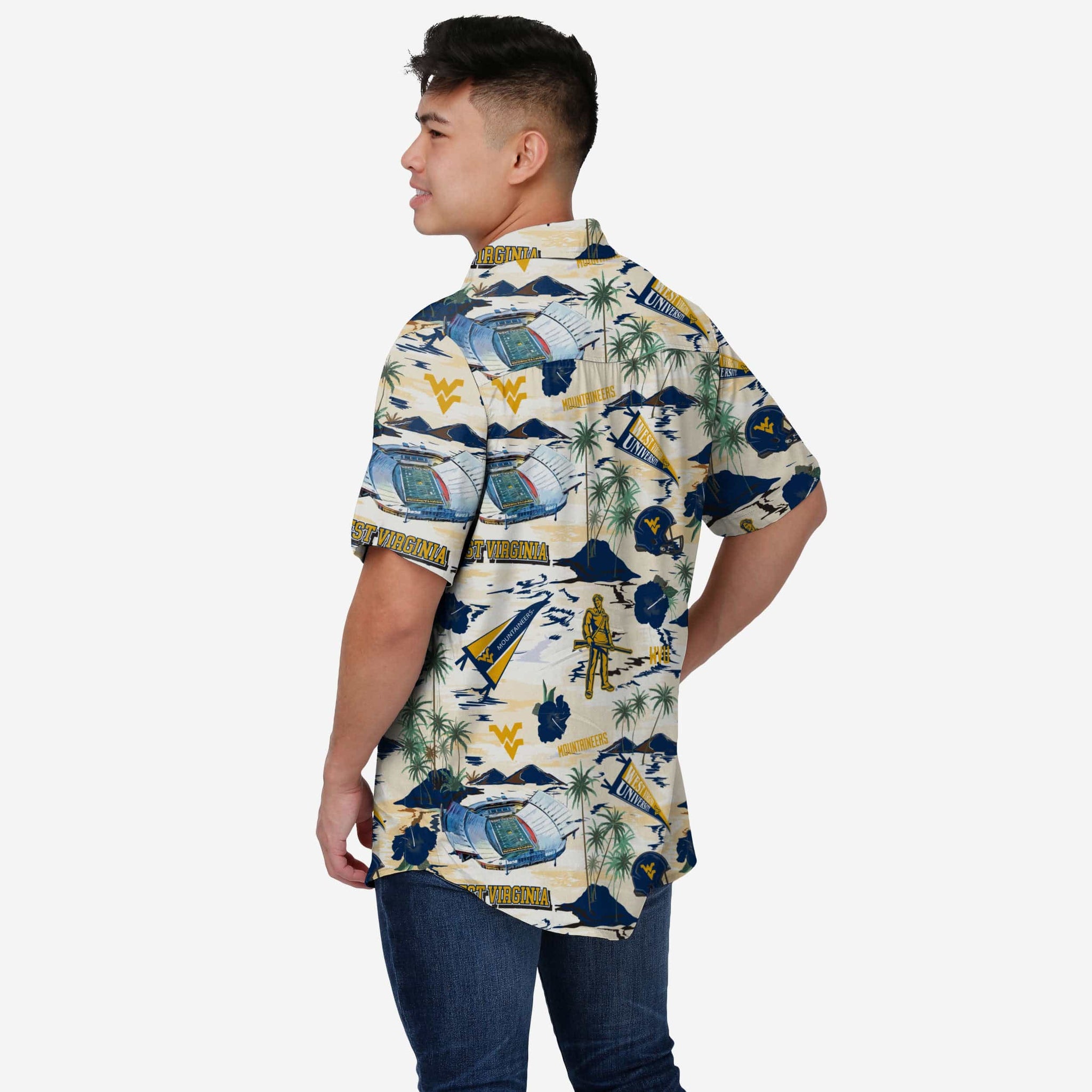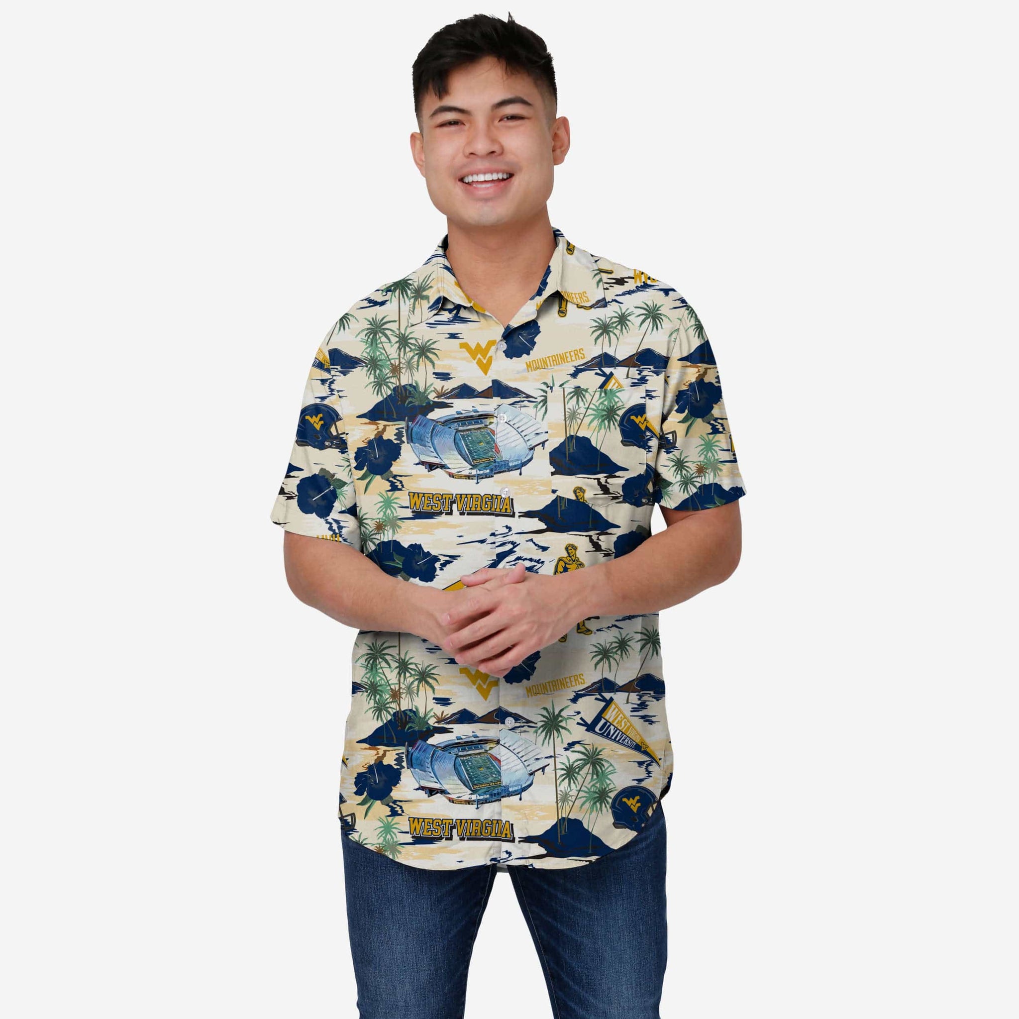 The game. The pool. The tailgate. The vacation spot. These are just a few places where you'll want to stylishly rep your team on the go in this West Virginia Mountaineers Thematic Stadium Print Button Up Shirt!
