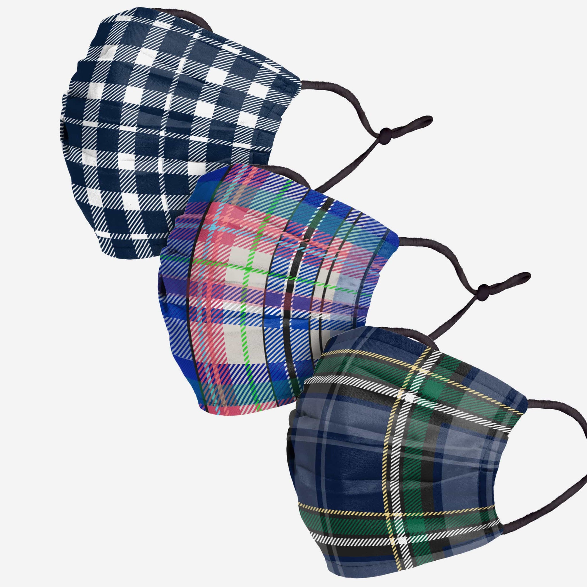 Cover up in style with this Blue Plaid Adjustable 3 Pack face covering!