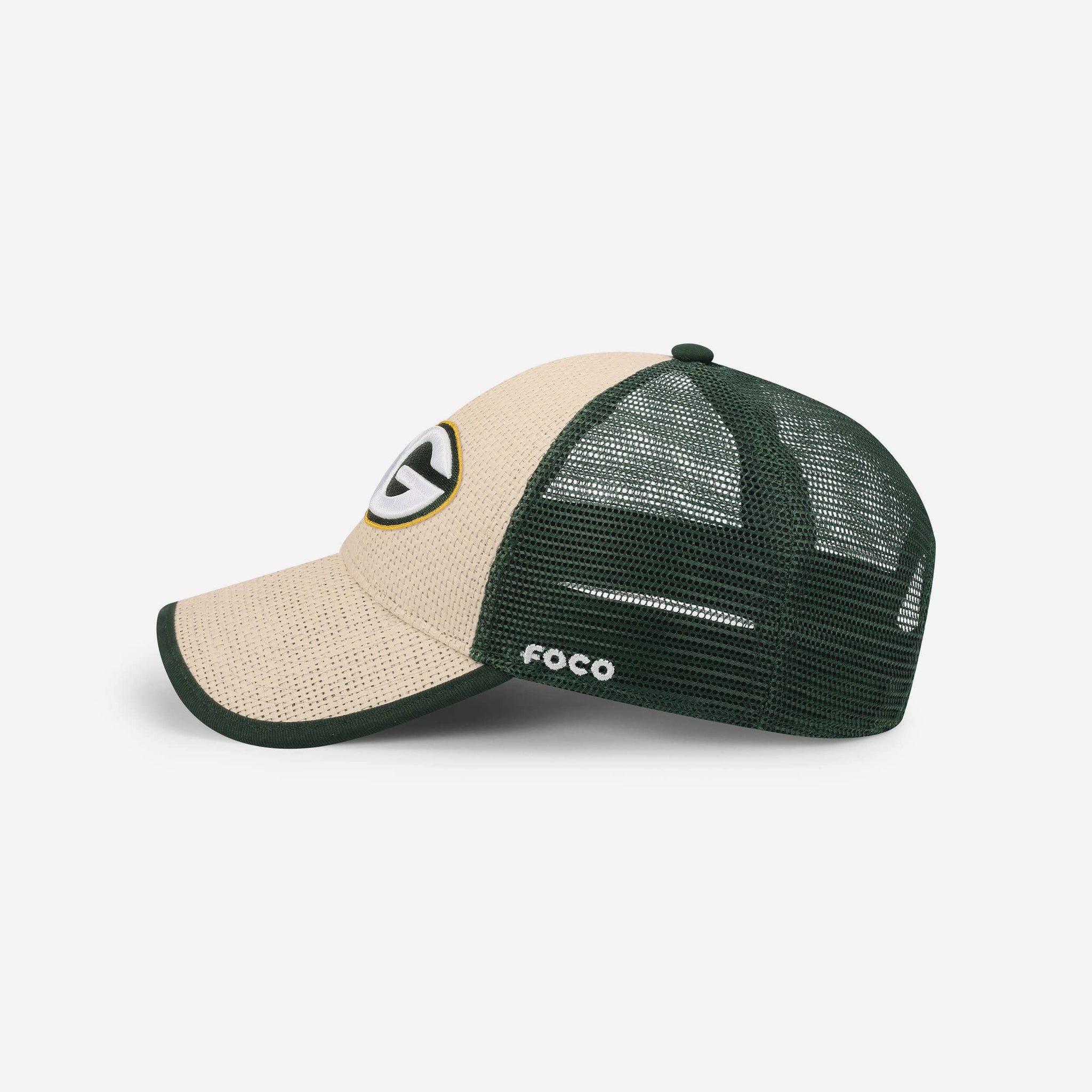 Whether you're behind the wheel of a big rig or in the stands at the game, this Green Bay Packers Straw Trucker Cap is just the thing for your outfit. Featuring an embroidered team logo display, a wordmark display, and an unstructured design with a curved visor and high crown, you’ll be all set to play the role of trucker and fan. Plus, the mesh panels and adjustable snapback snap closure makes this hat perfect for any adventure.