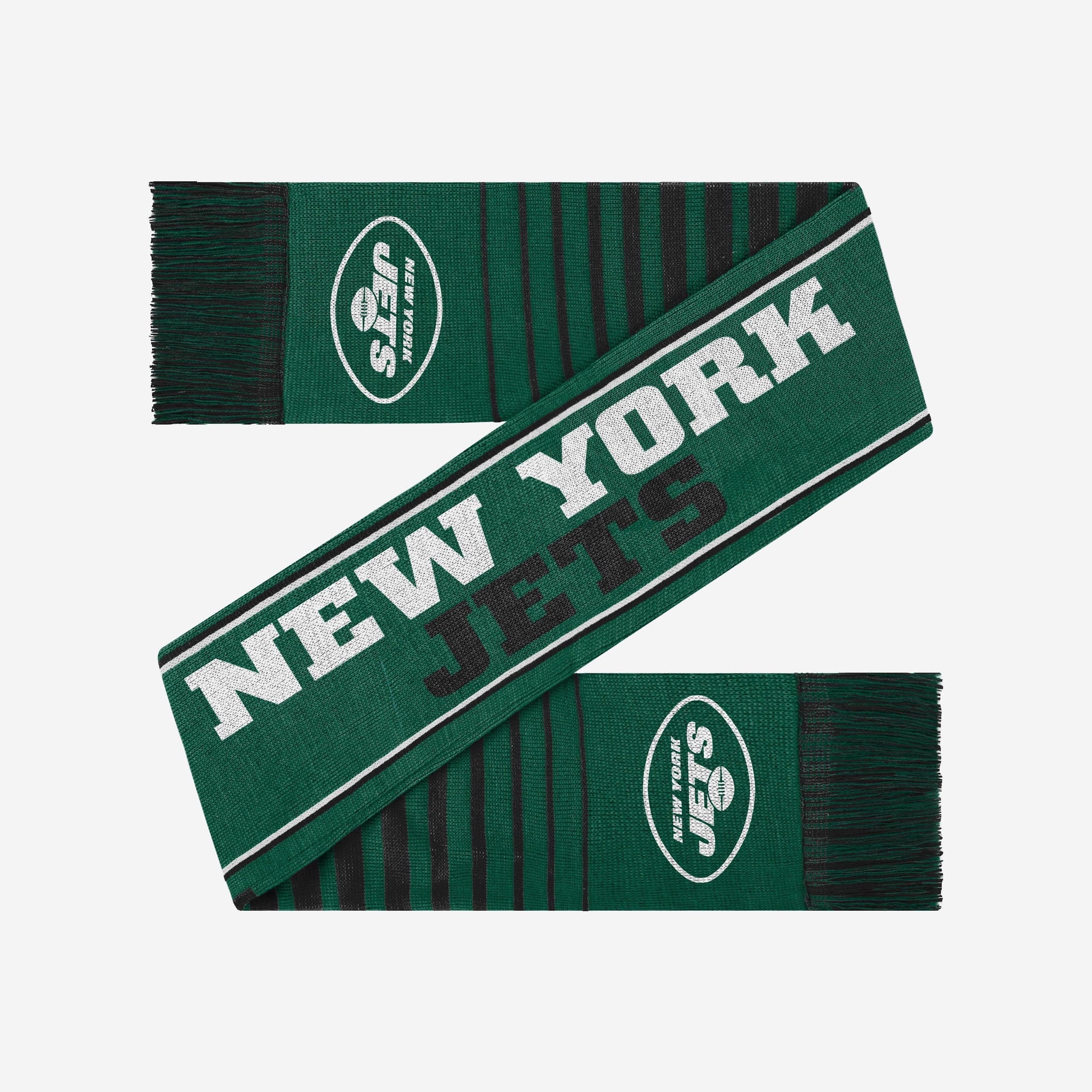 One scarf. Two ways to wear it. Double down and fan up with the New York Jets Double Sided Reversible Thematic Scarf.
