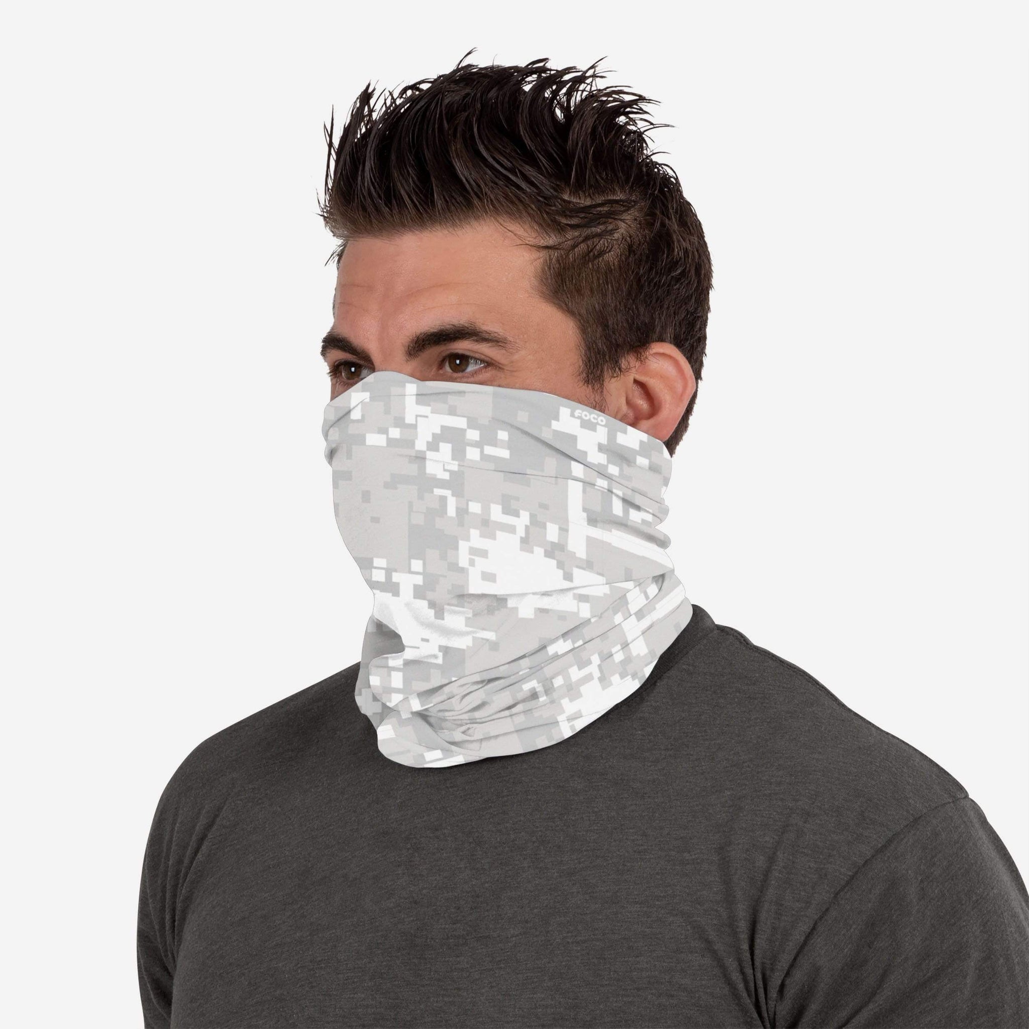 This White Digi Camo Printed Gaiter Scarf will keep your neck covered with lightweight, breathable material and help you cover up in style whenever you put it on!