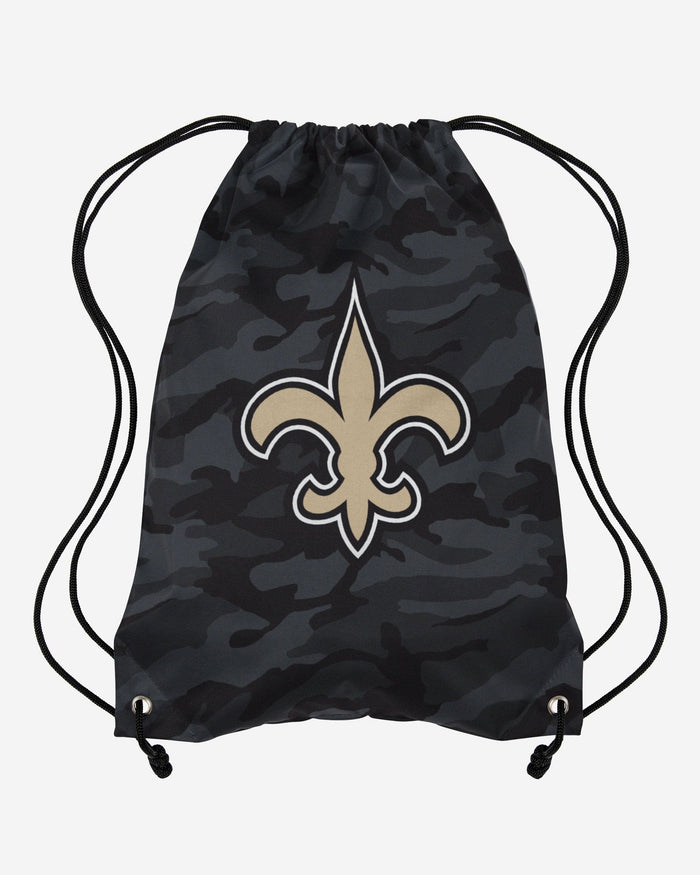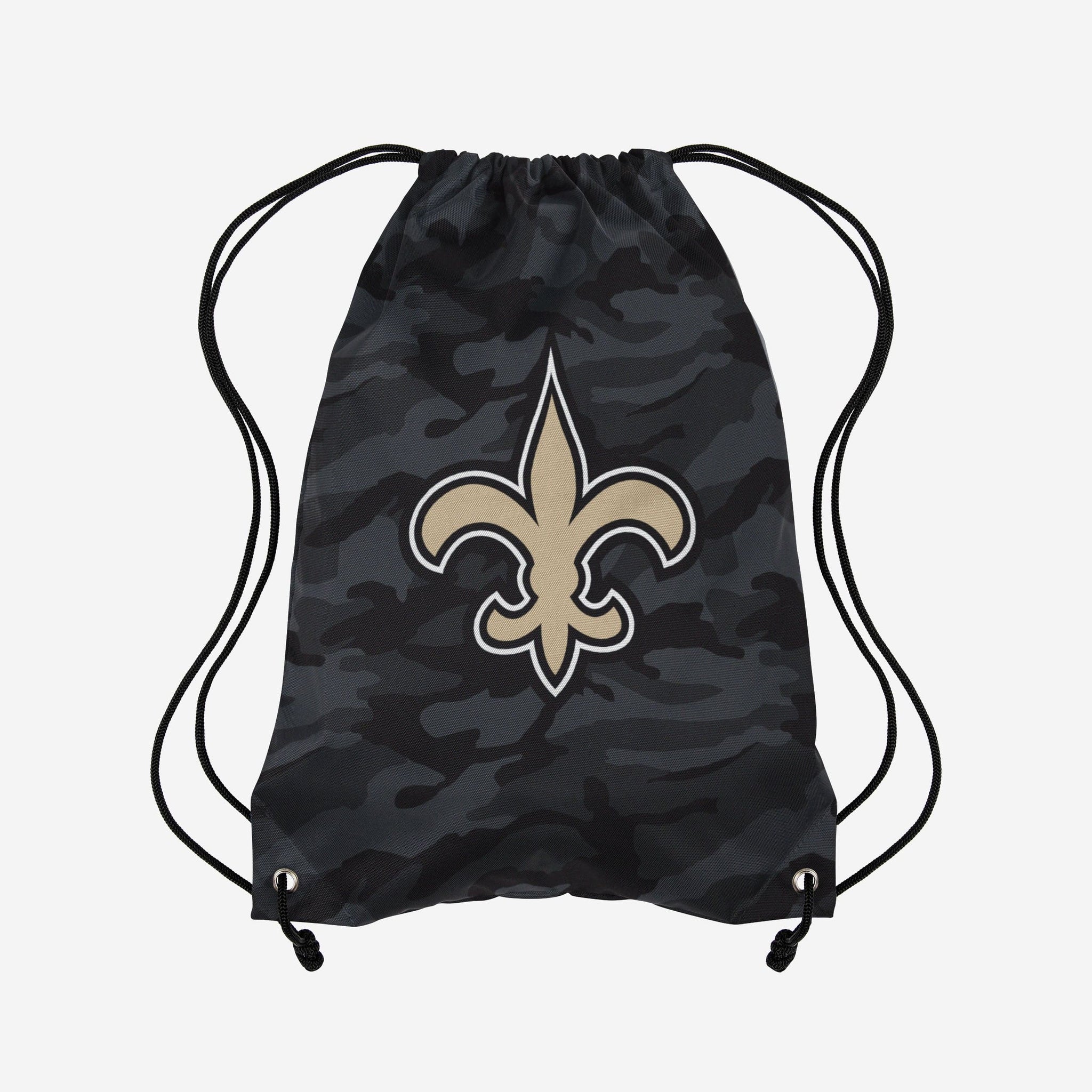 Keep calm. Carry on. Carry your stuff and stand out with this New Orleans Saints Big Logo Camo Drawstring Backpack!