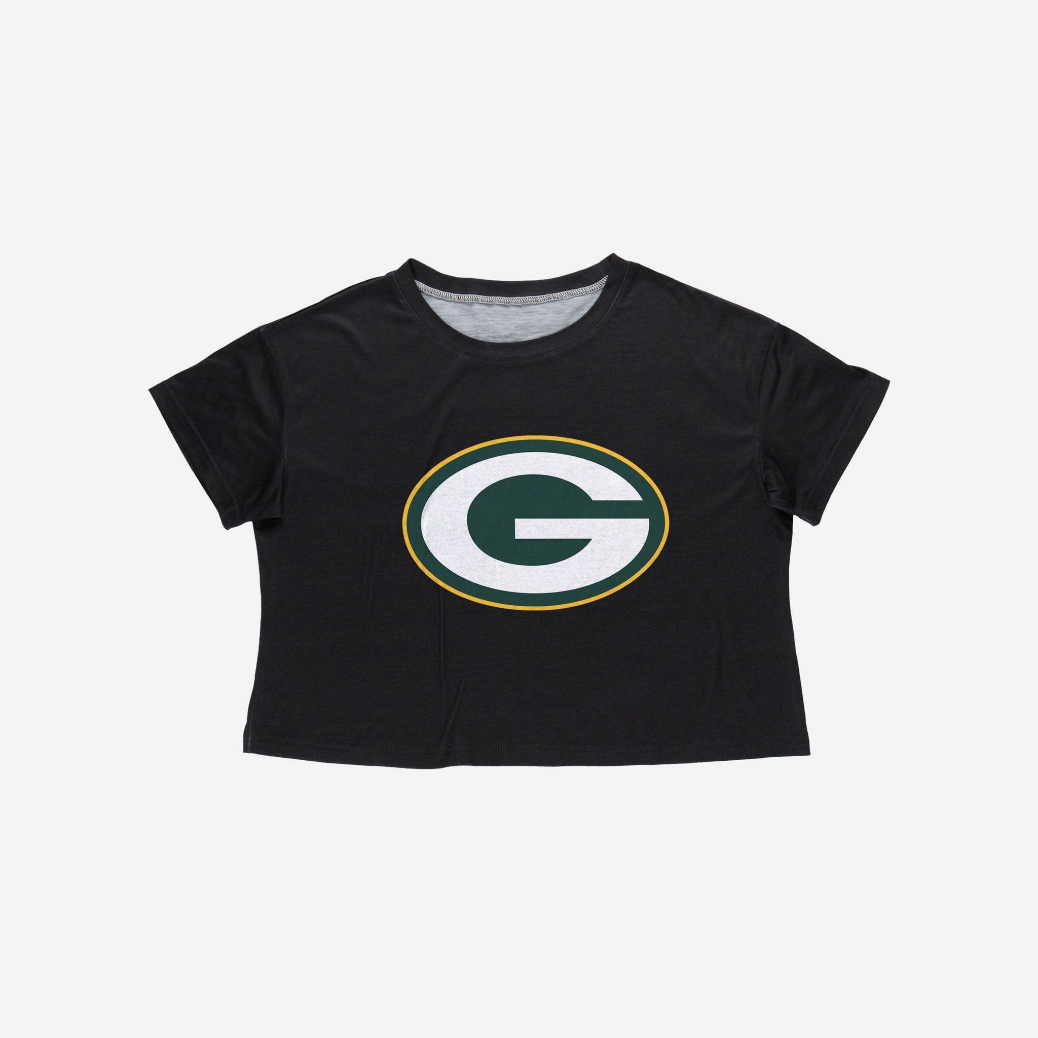 Green Bay Packers Womens Black Big Logo Crop Top FOCO - FOCO.com