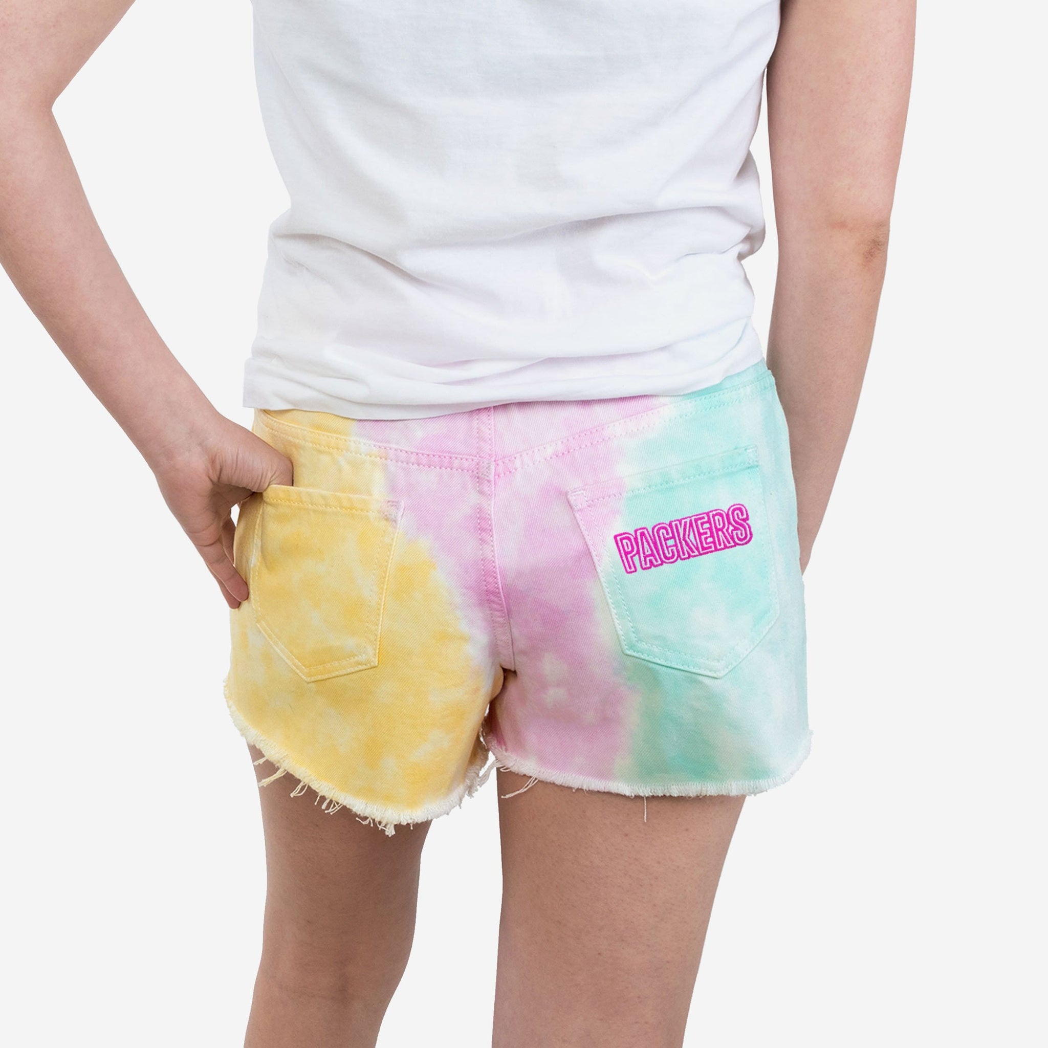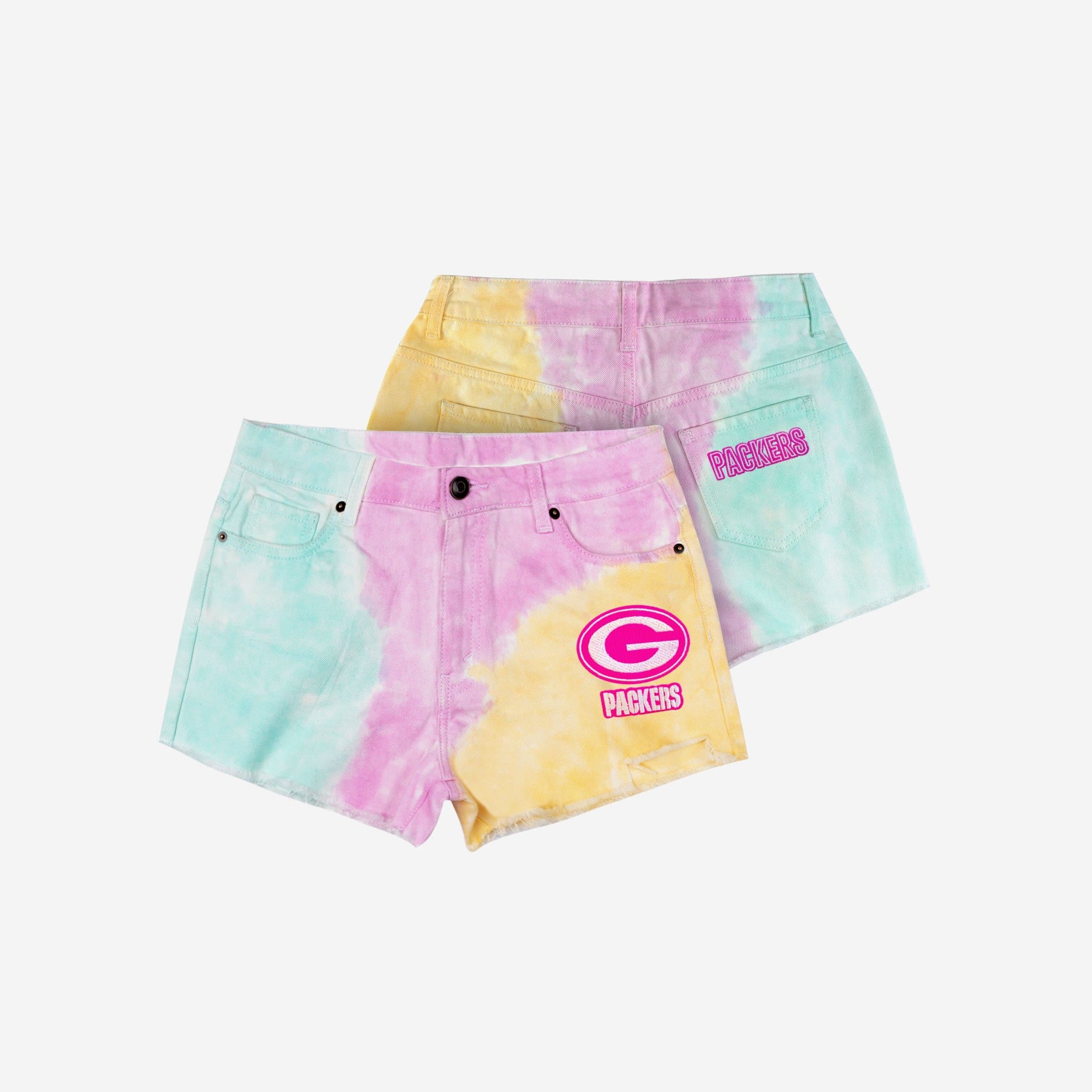 Tired: Blue jean shorts. Wired: TIE-DYE jean shorts! Add a denim delight to your gameday wardrobe with these Green Bay Packers Women's Tie-Dye Rush Denim Shorts!