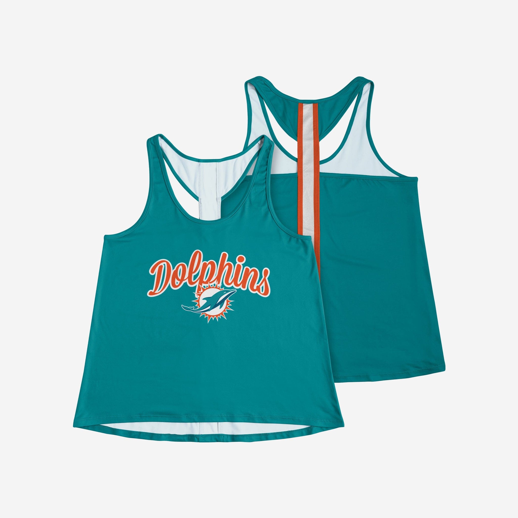 Just lounging around on a warm day? Absolutely CRUSHING a workout? This Miami Dolphins Women's Wordmark Team Stripe Sleeveless Top has you covered for both.