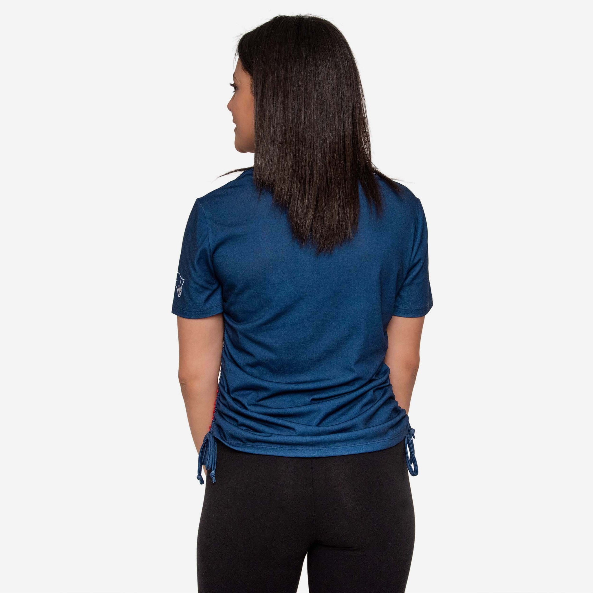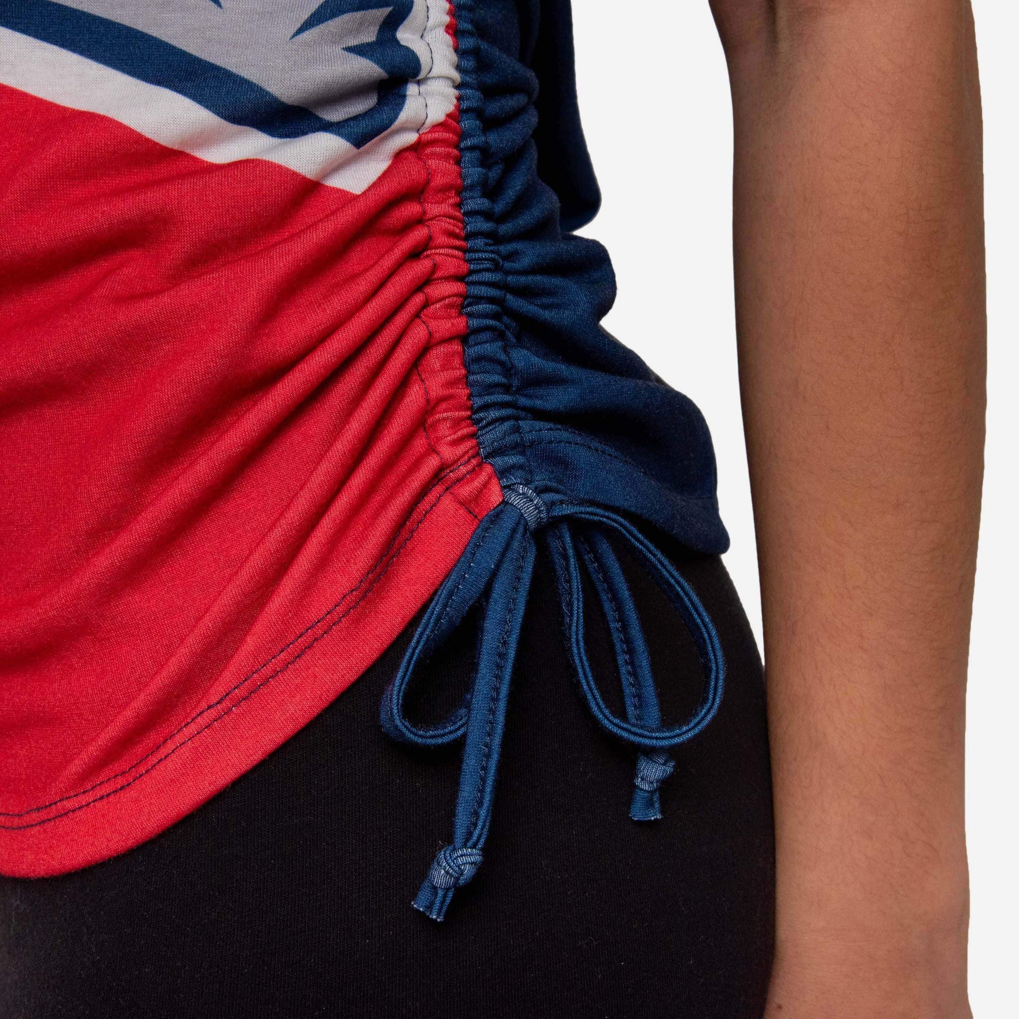 So, you're picking out your outfit, and you want to look stylish, but also show off your epic team passion. What a tough choice. Luckily, it's not one you'll have to make thanks to this New England Patriots Women's Ruched Replay Short SleeveTop.
