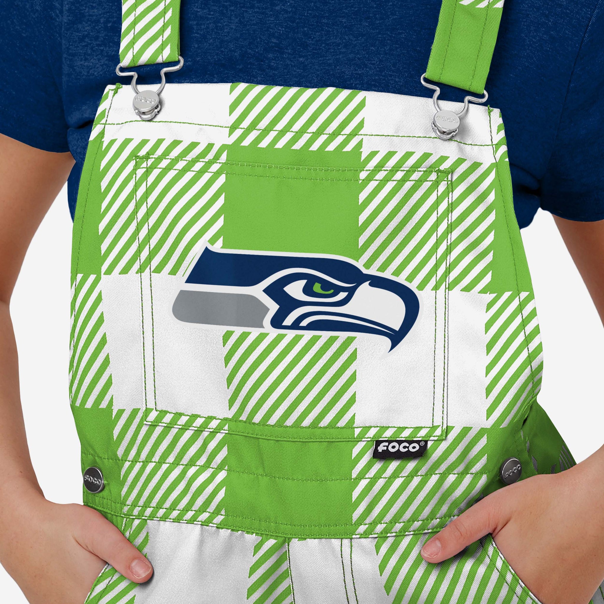 Seattle Seahawks Womens Plaid Bib Shortalls FOCO XS - FOCO.com
