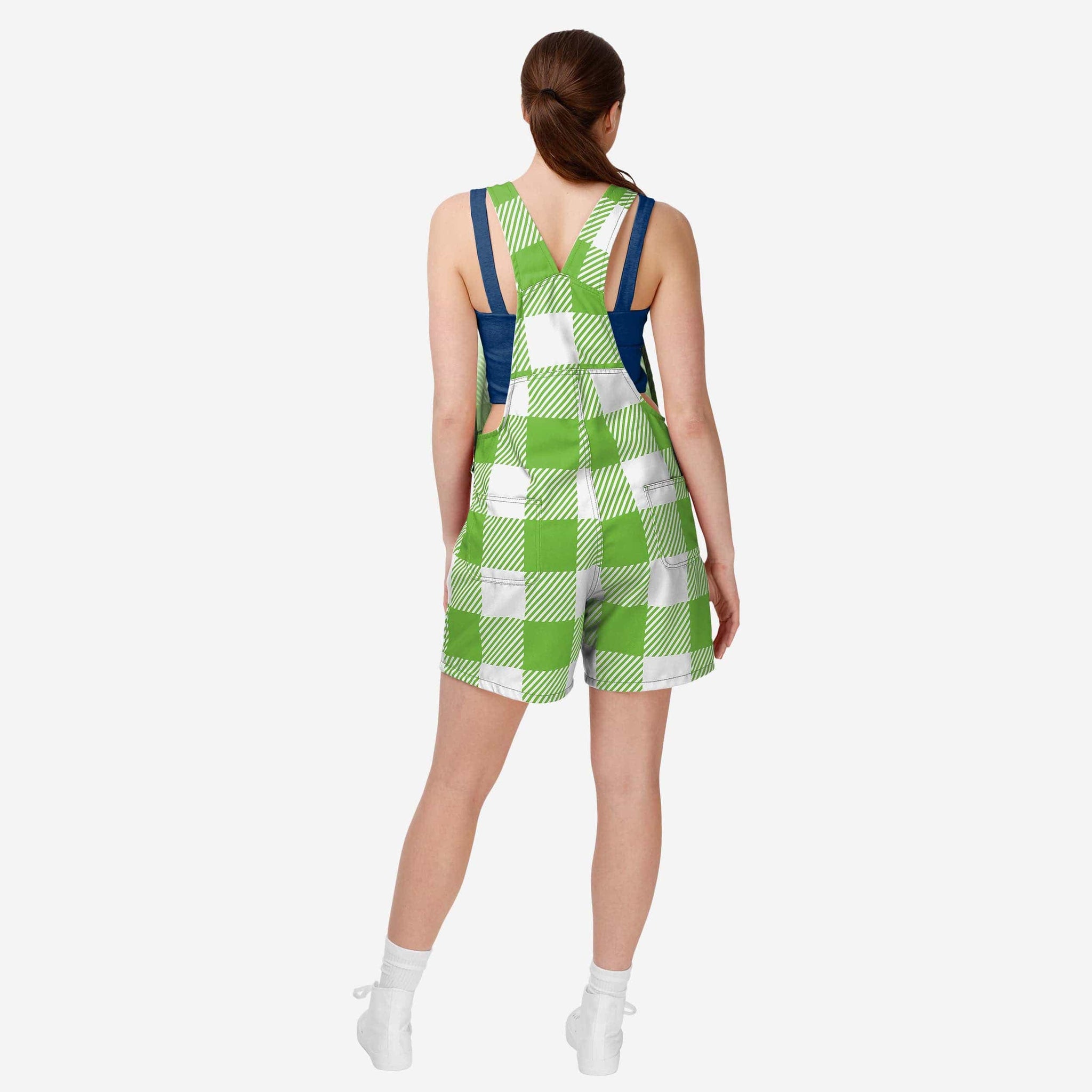 Seattle Seahawks Womens Plaid Bib Shortalls FOCO - FOCO.com