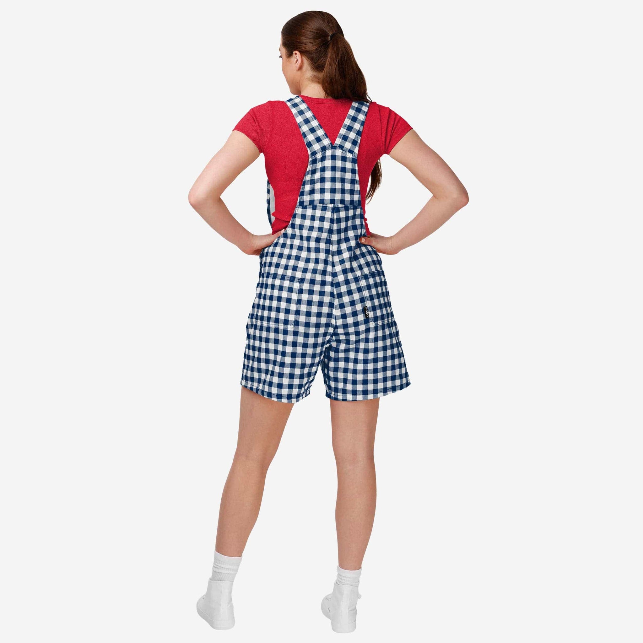 Show your team spirit in these stylish and comfortable New England Patriots Women's Gingham Check Bib Shortalls. With their all-over team-colored design and bold team logo display, these shortalls are the perfect way to show your support for the New England Patriots while showing off some gingham check fashion for a rustic, throwback feel.
