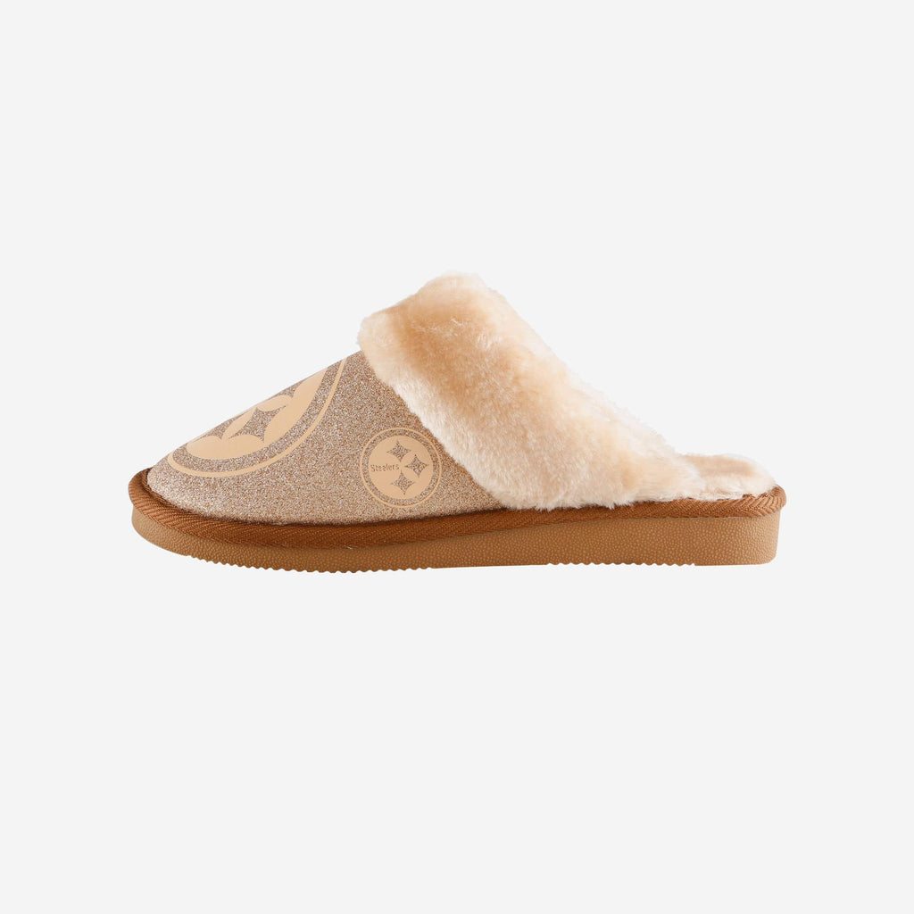 Pittsburgh Steelers Womens Glitter Open Back Fur Moccasin Slipper