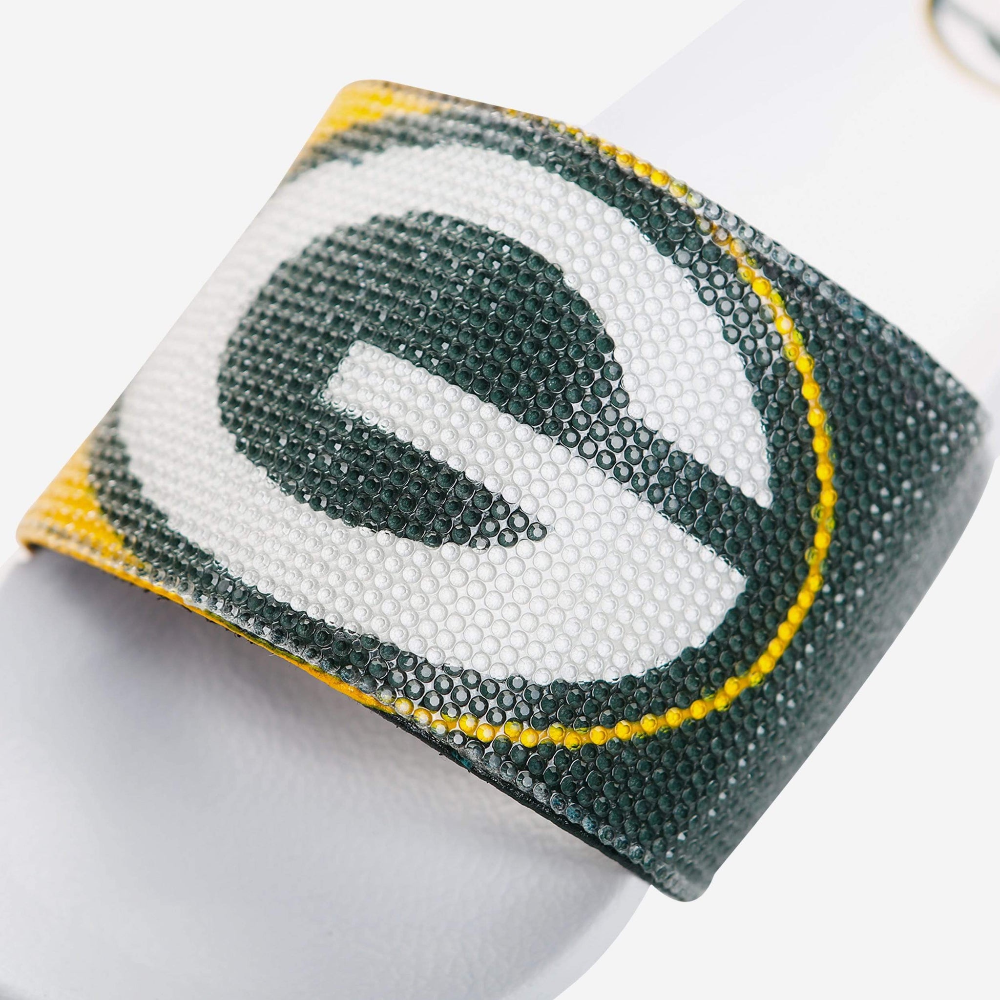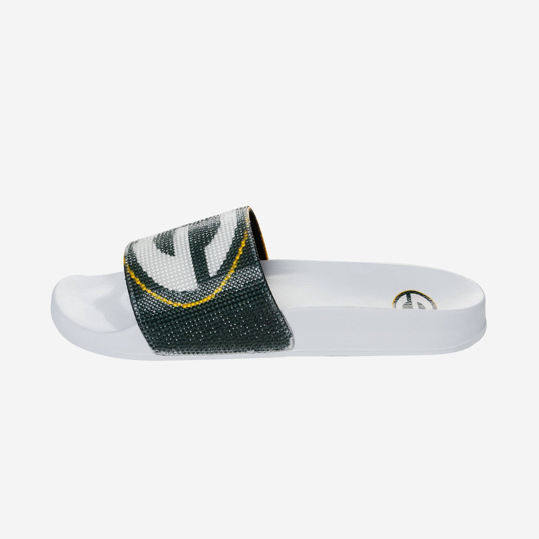 These Green Bay Packers Women's Big Logo Shimmer Slides are the jewel of fresh fan footwear! Let your team spirit shine like a beacon of awesome!