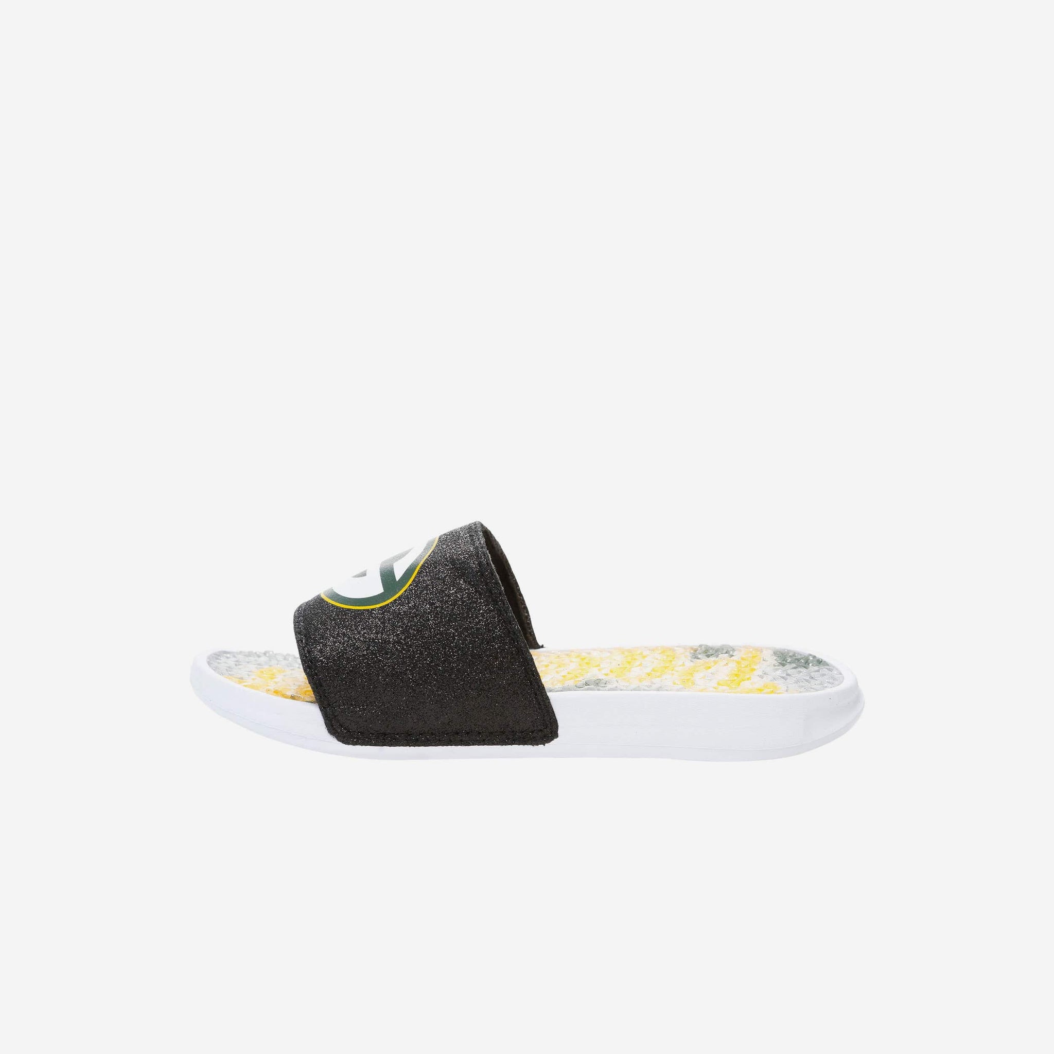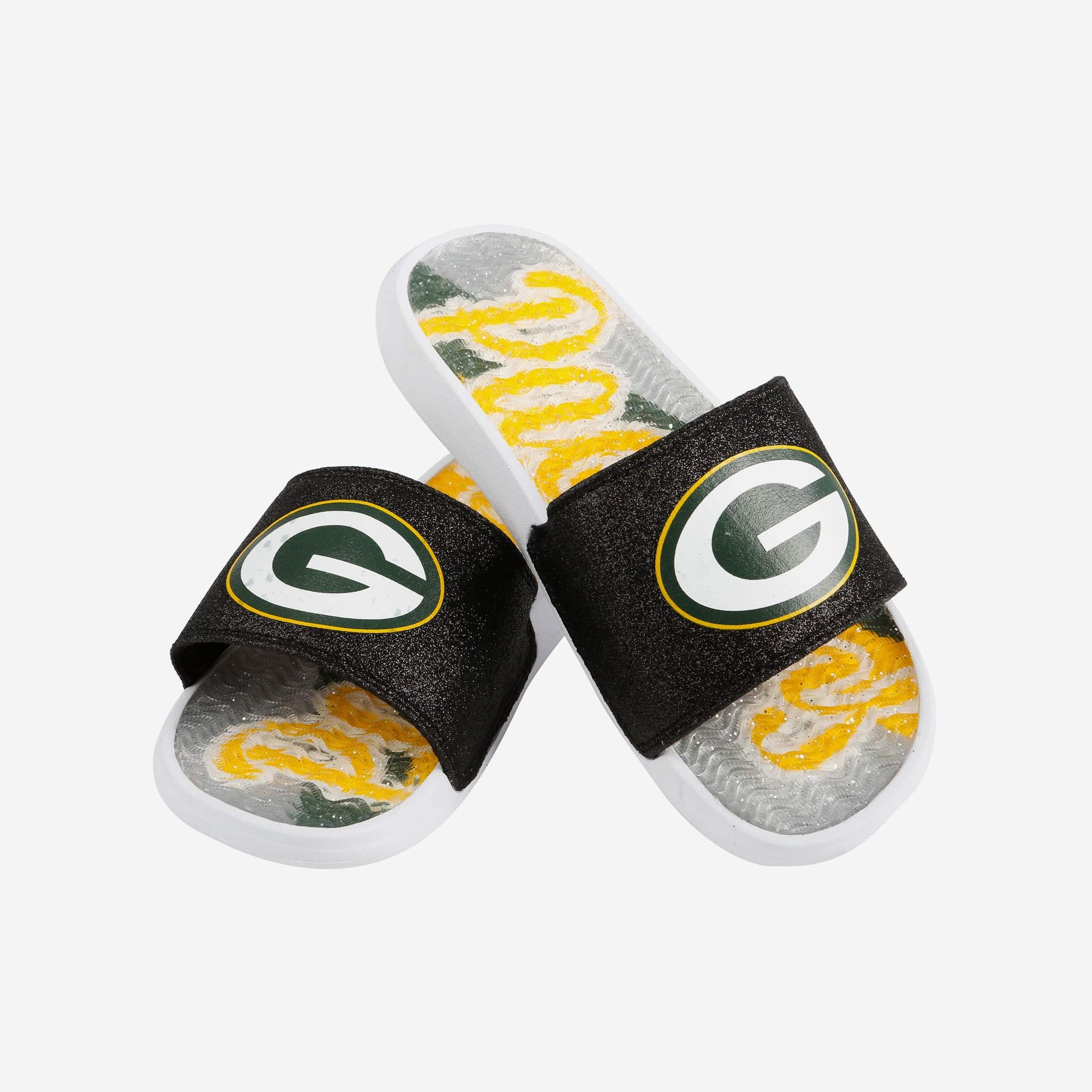 Fan footwear that will make you the pick of the glitter. Let your team spirit shine with every step in these Green Bay Packers Women's Glitter Gel Slides!