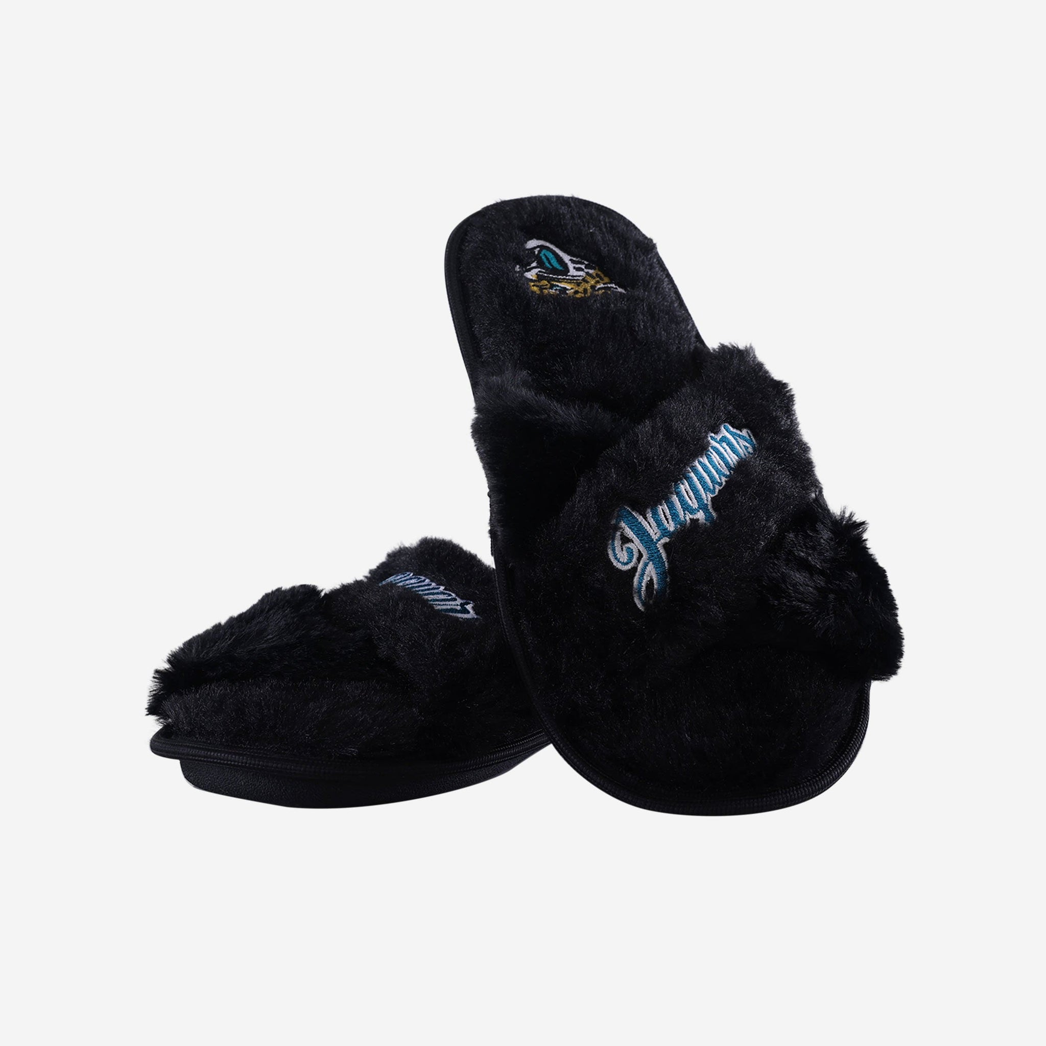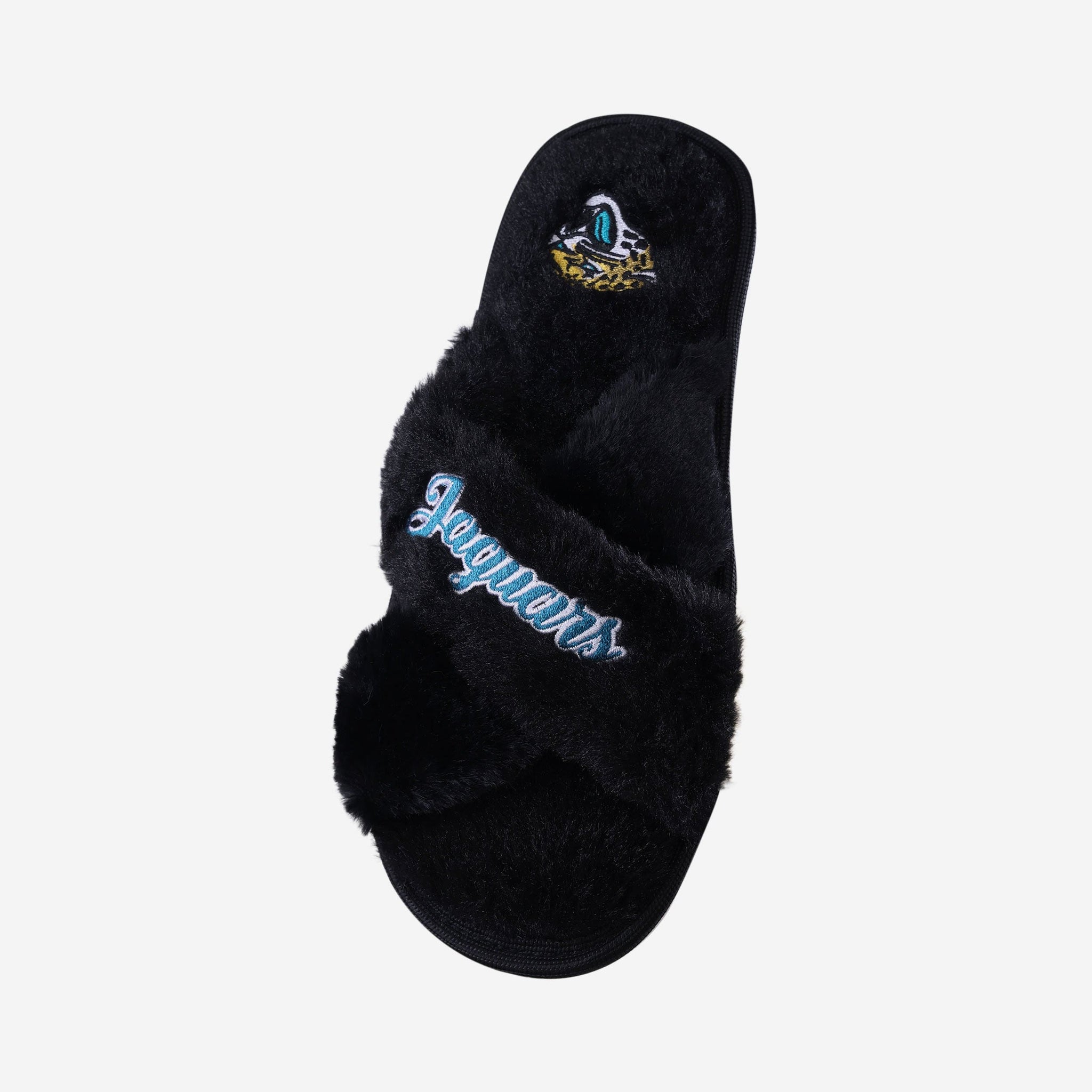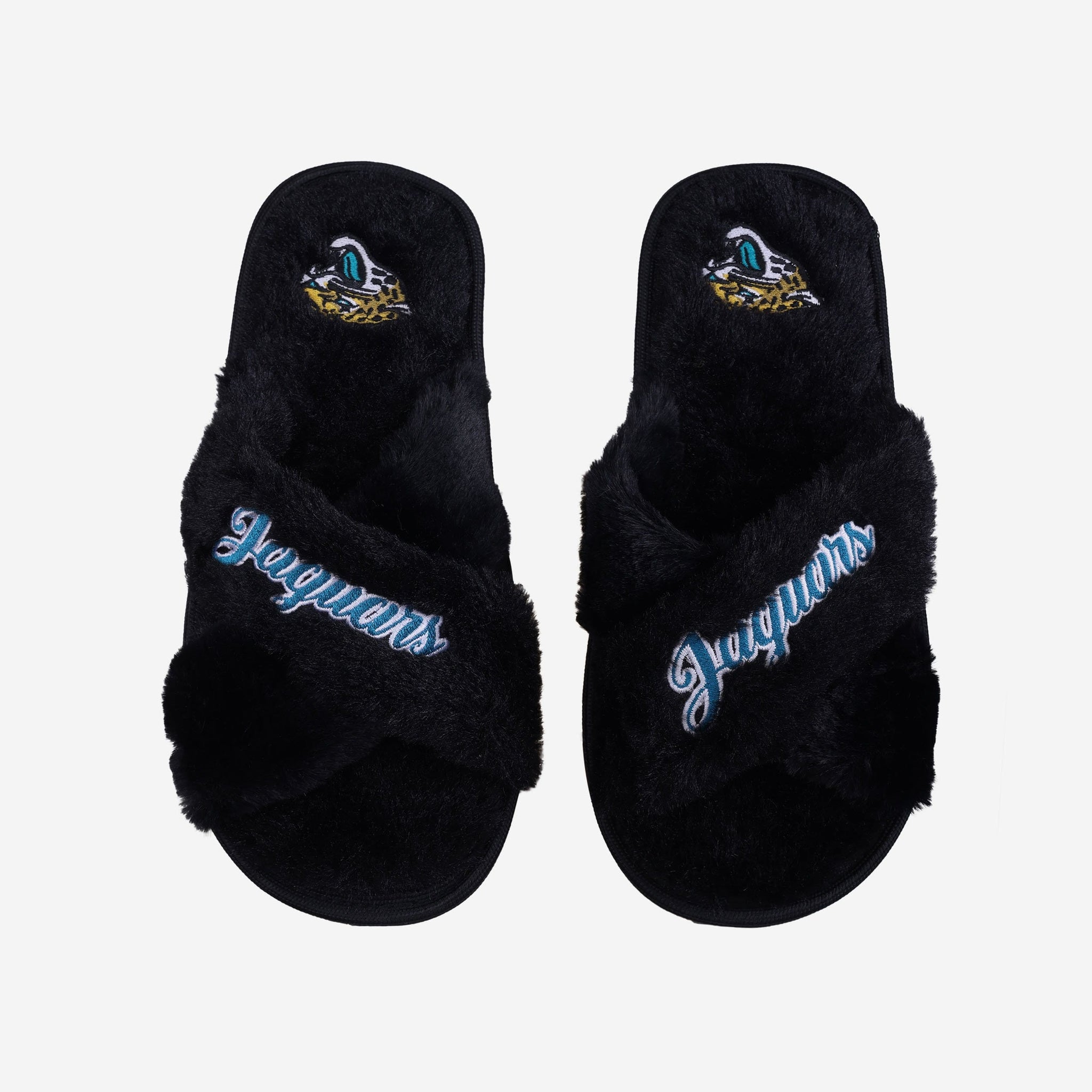 Slip in to something fuzzy, festive, and oh, so fan-tastic on your relaxing days at home. These Jacksonville Jaguars Women's Script Wordmark Fur Cross Slides are the best way to rep the team while you kick back and watch the game on TV.